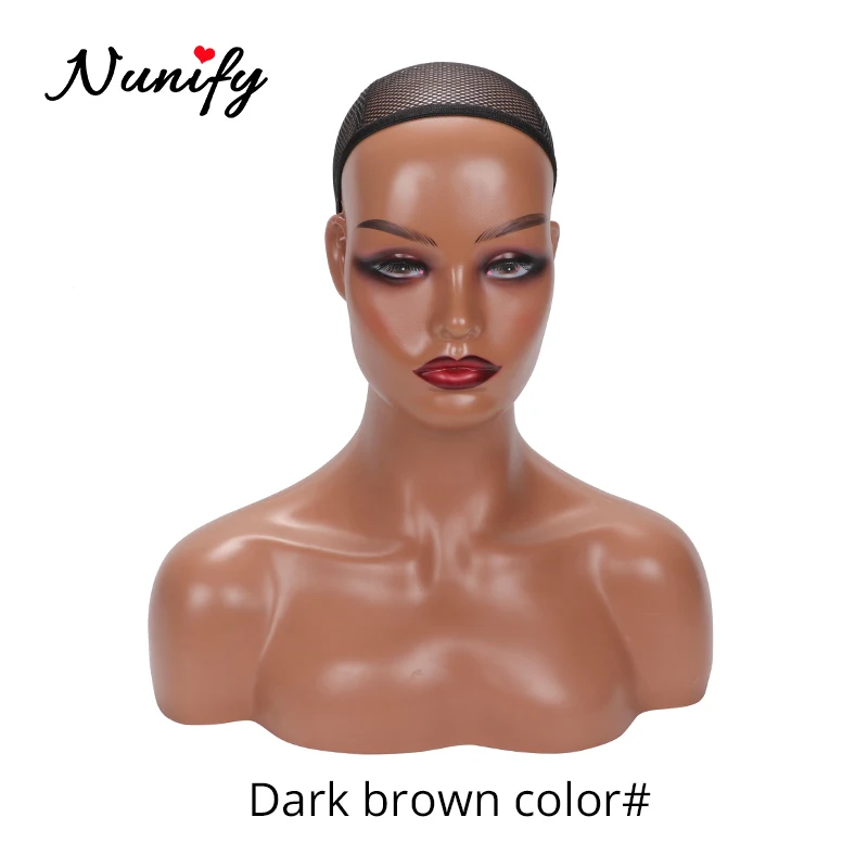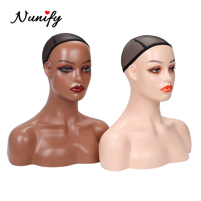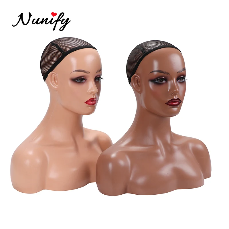 Nunify черная бежевая кожа манекен головной убор половина тела двойное плечо ПВХ Обучение манекен головы для дисплея парики на шляпы ювелирные изделия