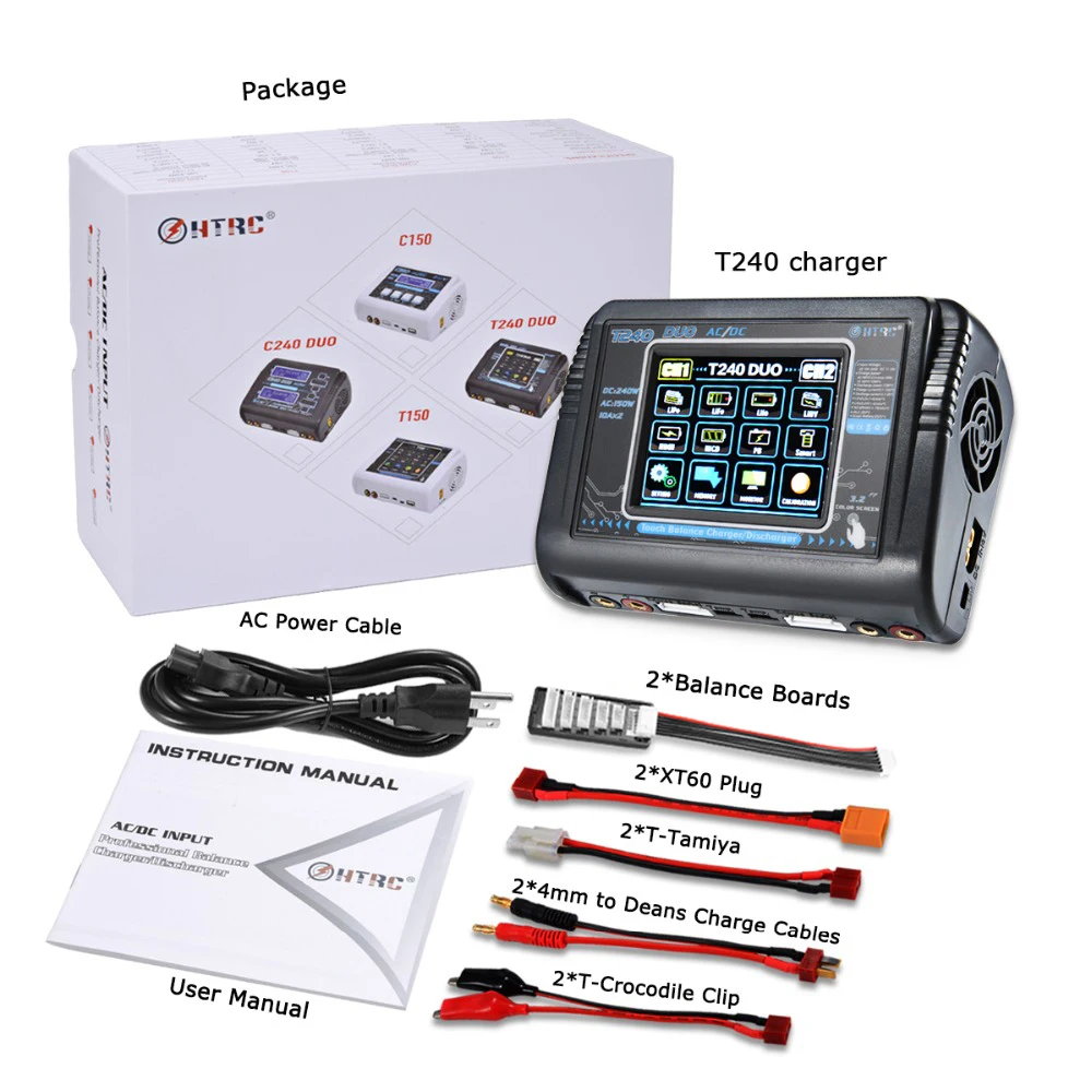 Зарядное устройство HTRC T240 C240 Lipo, Двухканальное, 150 Вт, постоянный ток, 240 Вт, сенсорный экран, балансирующее зарядное устройство, зарядное устройство C150 T150 для радиоуправляемых моделей Игрушек