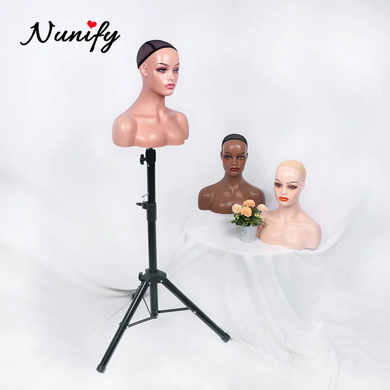 Черная и бежевая голова-манекен Nunify с плечами для париков инструменты для изготовления париков искусственная подставка женская модель для сережек