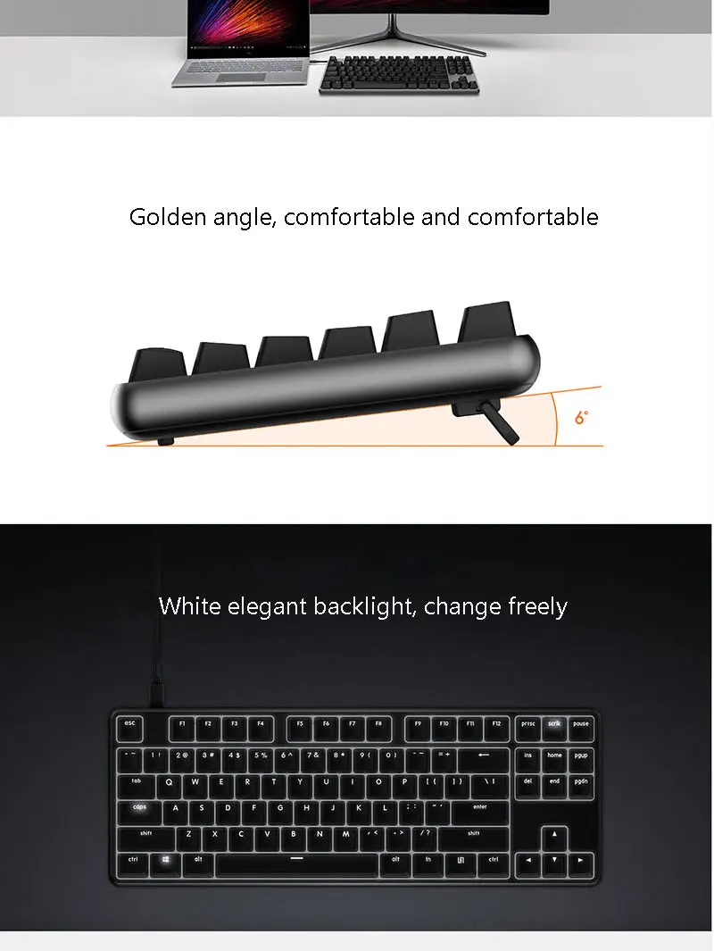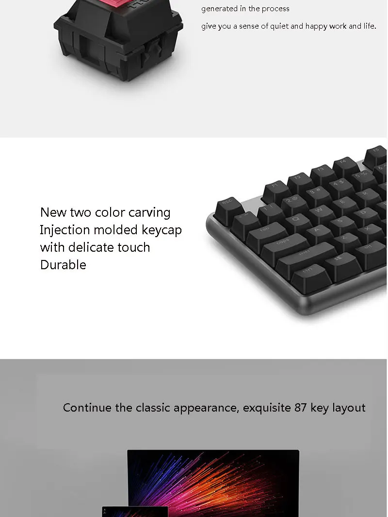 Механическая клавиатура Youpin Yuemi Pro, 87 клавиш, тихая версия, клавиатура с подсветкой, Проводная клавиатура для ПК