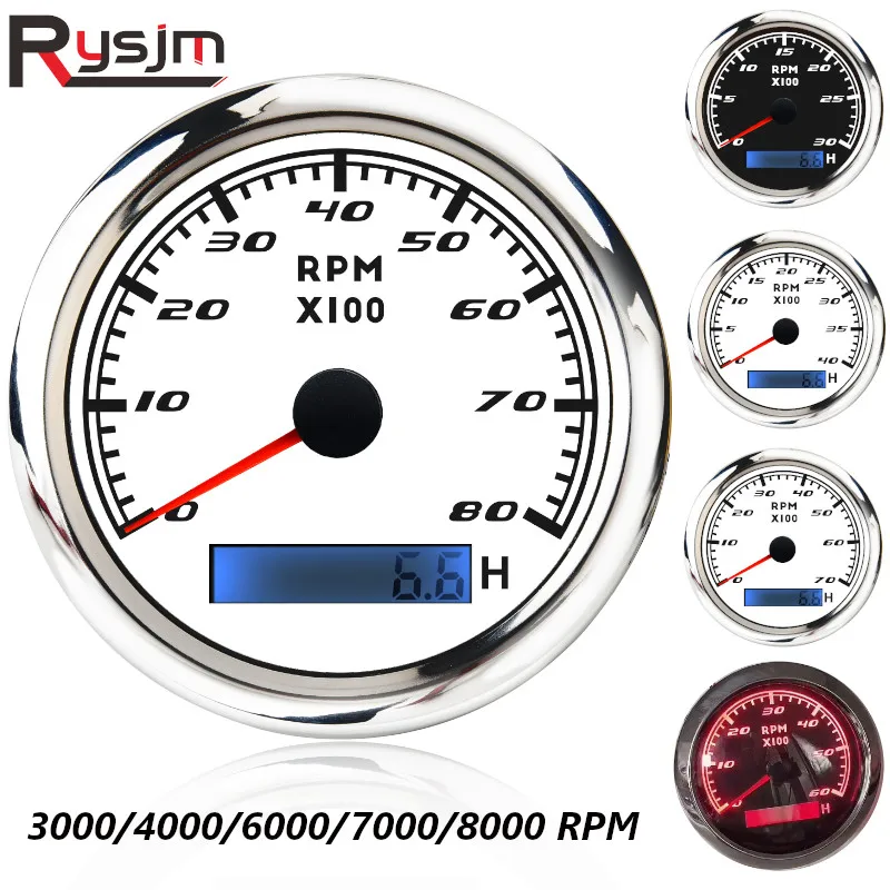 85 мм Морской Судовой Тахометр Датчик 8000 об/мин 7000 об/мин 6000 об/мин 4000RPM Тахометр метр ЖК-дисплей счетчик моточасов об/мин Метр красной подсветкой 12V/24V