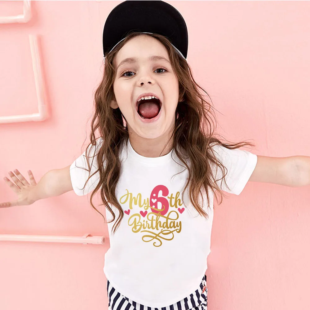 Детская футболка для девочек на день рождения, летняя детская одежда, забавная футболка, футболки, топы, размер От 1 до 8 лет, подарок