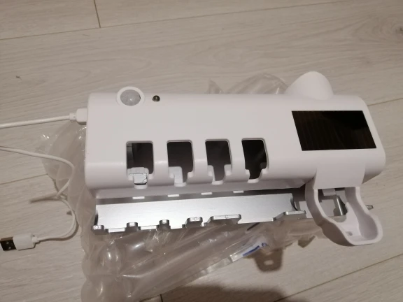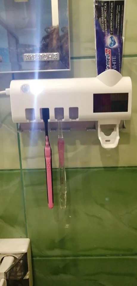 Визуально понравился приборчик. Стильный, необычный. На сколько он эффективен не известно. Датчик движения работает. У тюбика с пастой должен быть максимально длинный винт, иначе механизм для выдавливания пасты бесполезен. Зарядка и от солнечной батареи, и от сети. Шнур идет в комплекте, а блок использую от телефона. Крепится к гладкой поверхности на двухсторонний скотч на задней панельке. Упаковка серьезная. Надувная подушка безопасности. Все пришло в целости и сохранности, никаких дефектов, никаких сколов. Доставка быстрая, меньше двух недель до Челябинской области. Получила смс, что посылку могу забрать на кассе магазина пятерочка. Очень удобно. Товар и продавца рекомендую однозначно!
