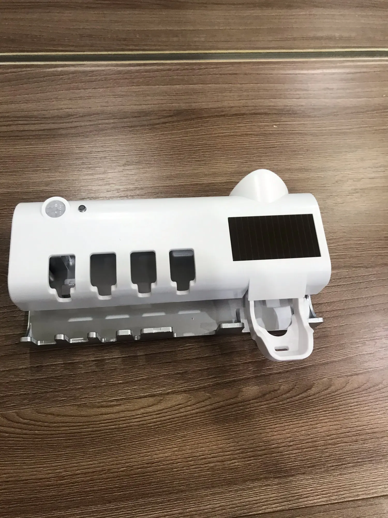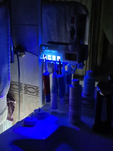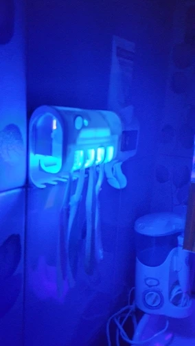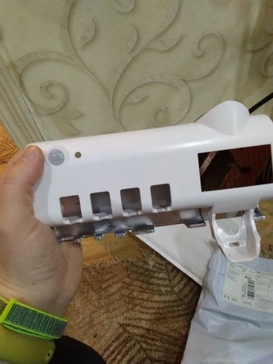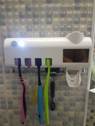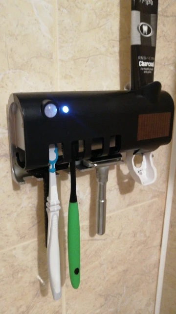устройство для подачи зубной пасты работает хорошо щётки держатся тоже хорошо датчик срабатывает так как надо ультрафиолет Не знаю пока не проверил. Но фиолетовый свет включается также есть подсветка в виде белого диода которая когда погаснет тогда будет ясно что батарейка села и нужно будет зарядить. Правда пока ещё непонятно Когда будет заряд полный когда завершена зарядка. при обнаружении движения срабатывает датчик и фиолетовый свет включается.