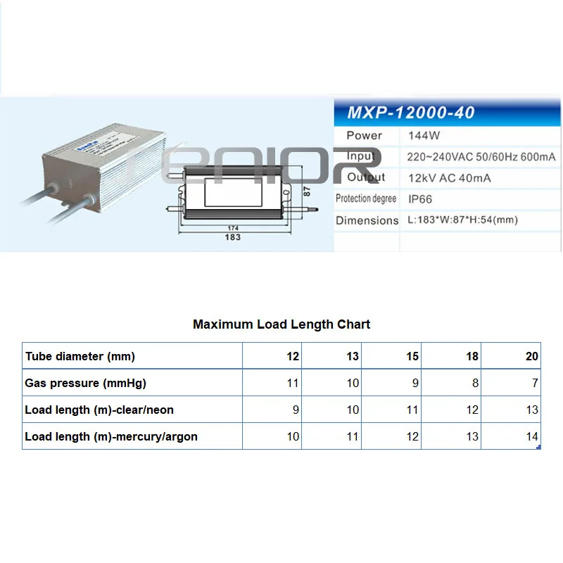 Особенности:-Инновационная высоконадежная схема с электронным Магнитным потоком преобразователь утечек внутри алюминиевый чехол.-Симметричная волновая форма выхода, нулевой перенос ртути.-Высокая мощность постоянного тока до пика 40 мА, хорошо подходит для неоновых или холодных катодных трубок.-С существенным алюминиевым корпусом теплоотвода, проектирование для высоких температур окружающей среды или плохой конвекции приложений.-Полностью герметичный и водонепроницаемый, хорошо подходит для наружного применения.Экологические характеристики:-Рабочая температура: -30 ℃ ~ 50 ℃ @ Полная нагрузка-Охлаждение: конвекция