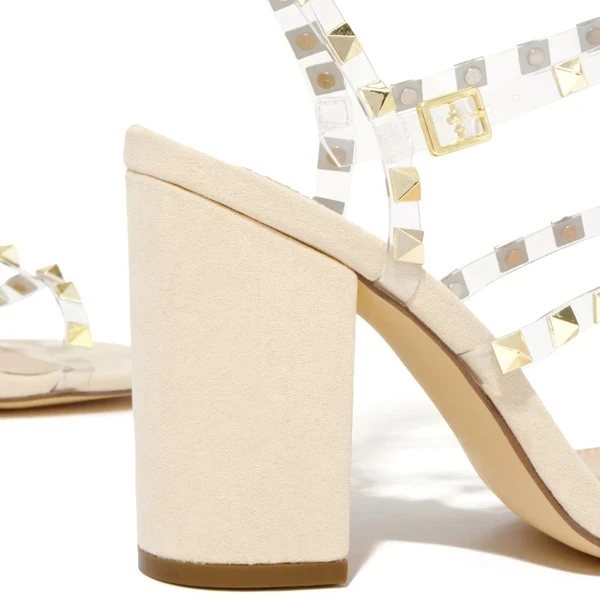 Сандалии женские с заклепками, повседневные Шлепанцы из ПВХ, обувь на высоком каблуке, для улицы и банкета, модные босоножки с пряжкой, лето 2021