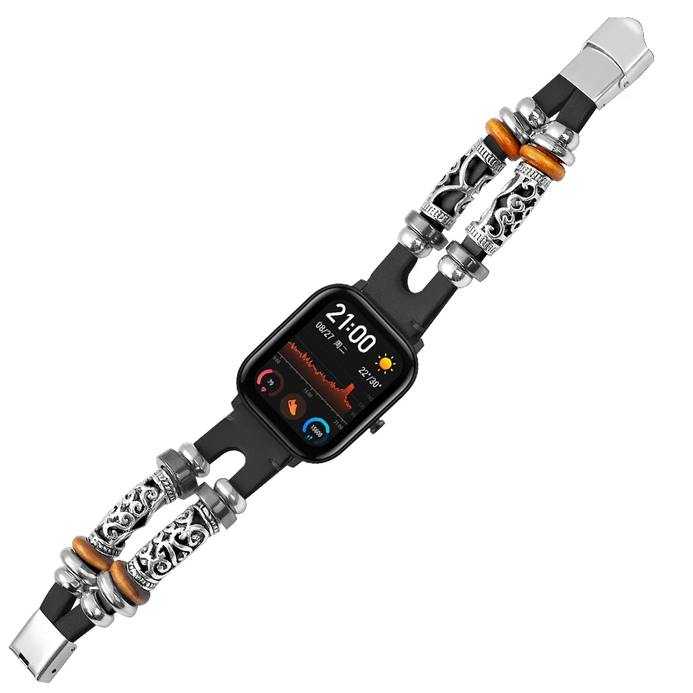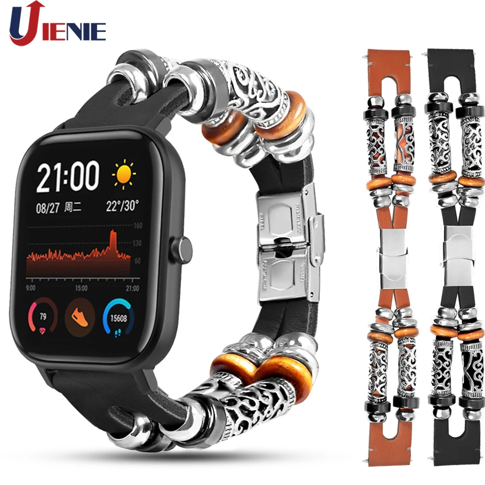 Ремешок для часов Huami Amazfit GTS с бисером в стиле ретро, кожаны...
