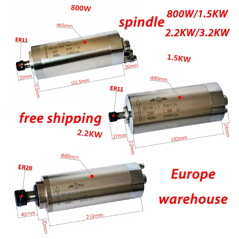 Бесплатная доставка, шпиндель с водяным охлаждением, двигатель 800 Вт1.5 кВт2,2 кВт3,2 кВт VFD 220 В, инвертор для фрезерного станка с ЧПУ, Гравировальный фрезерный станок