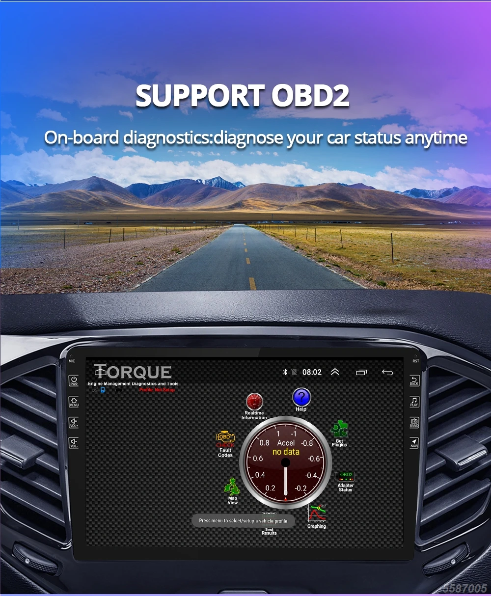 Поддержка функции OBD Turque. Вы можете подключить OBD ключ (не входит в комплект). В сочетании с программным обеспечением для обнаружения транспортных средств, которое может считывать каждую дату датчика автомобиля, автоматическое определение в реальном времени, предоставление достоверных справочных данных в реальном времени для безопасности дорожного движения.