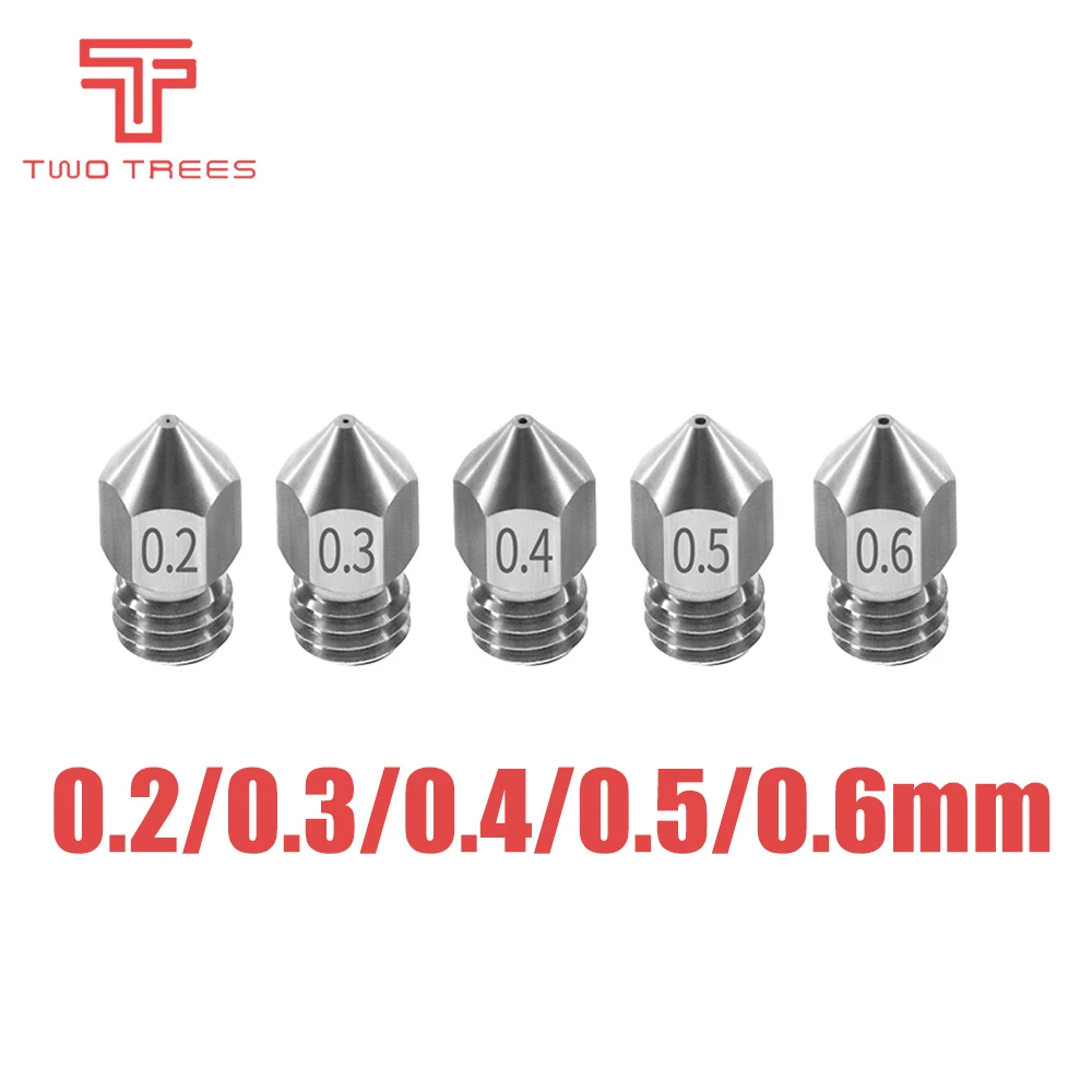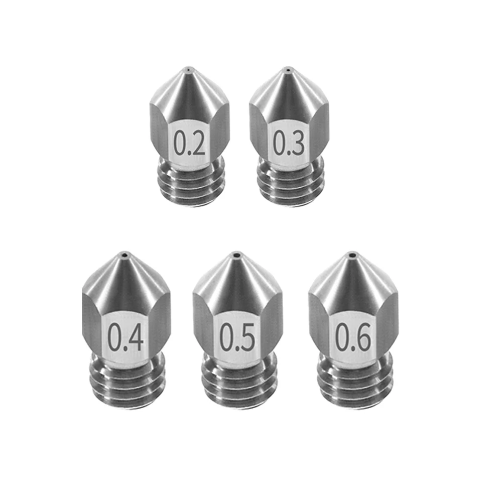 Сопло MK8 из нержавеющей стали для 3D-принтера M6 0,2, 0,3, 0,4, 0,5, 0,6 мм, для нити 1,75 мм, для CR10, CR-10S, Ender 3, Ender 5