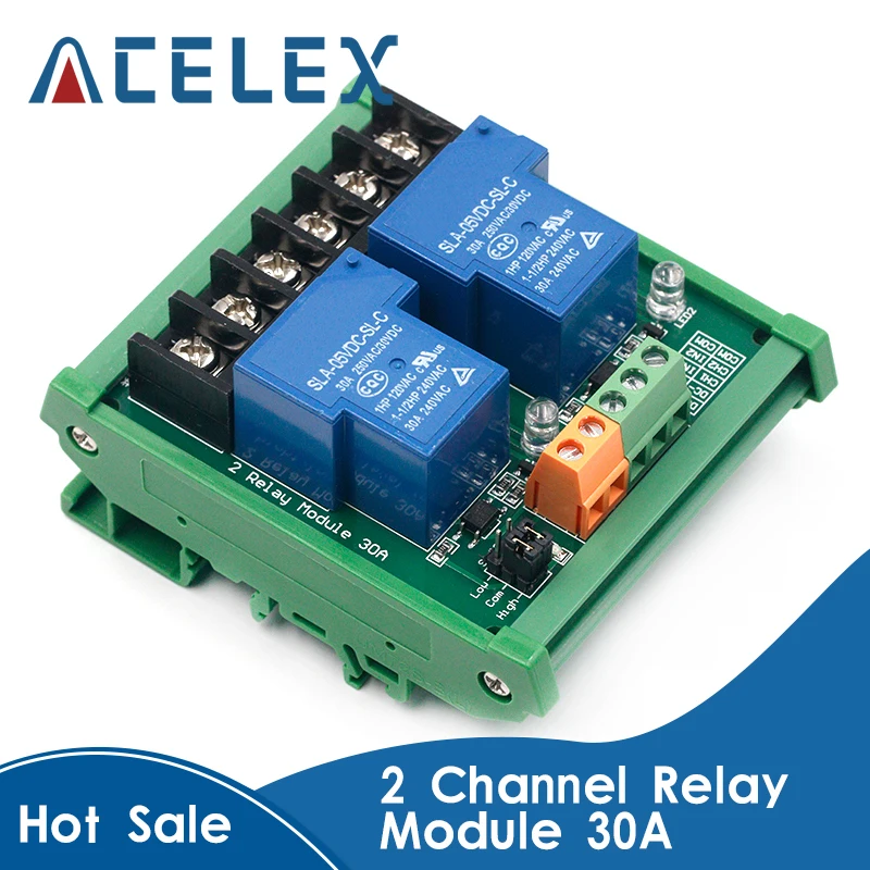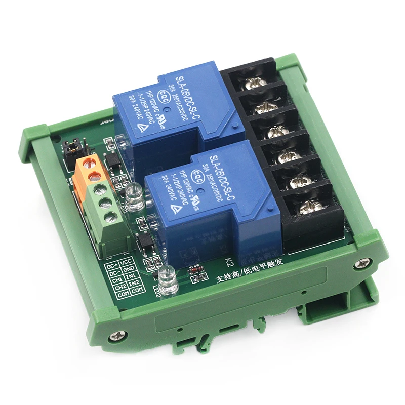 Двухканальный релейный модуль 30 А с оптопарной изоляцией, Высокий Низкий триггер для умного дома, PLC с направляющей 5 в 12 В 24 В