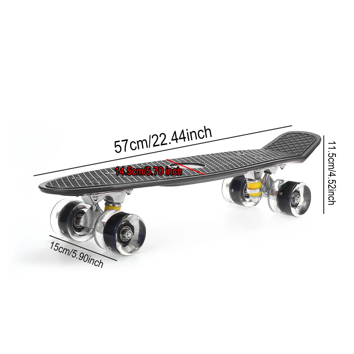 Характеристики:Название продукта: скейтборд для детей 22 дюймовМатериал: АБС-пластикМатериал колеса: ПУРазмер: 57x14.5x11.5 см/22,44x5,70x4,52 дюймаЦвет: черный/розовыйОсобенности:-Маленькие панели в форме рыбы, полные жизненной силы-Использование высокоэластичной амортизирующей ПУ прокладки и противоскользящей гайки, не свободно, очень безопасно для использования-Когда колесо катится, цвет светильник, который делает ваш скейтборд более крутым в вечернее время, также может помочь людям увидеть вас легко-Независимо от того, занимаетесь ли вы в кампусе, чтобы сделать его на занятие вовремя или быстро в магазин, этот мини-крейсер идеально подходит для скейтеров на любом этапе жизни. Дети, подростки и взрослые любят свою универсальность и плавную езду.