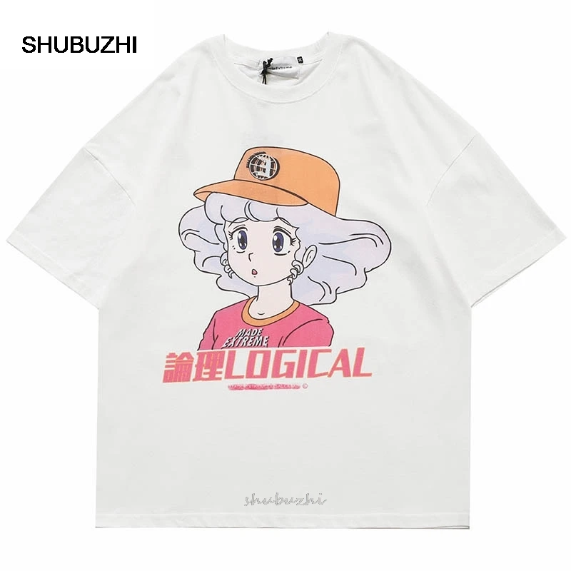 Футболка мужская в стиле хип-хоп, уличная одежда с японским мультяшным рисунком для девушек, хлопковый топ в стиле Харадзюку с коротким рукавом в стиле аниме