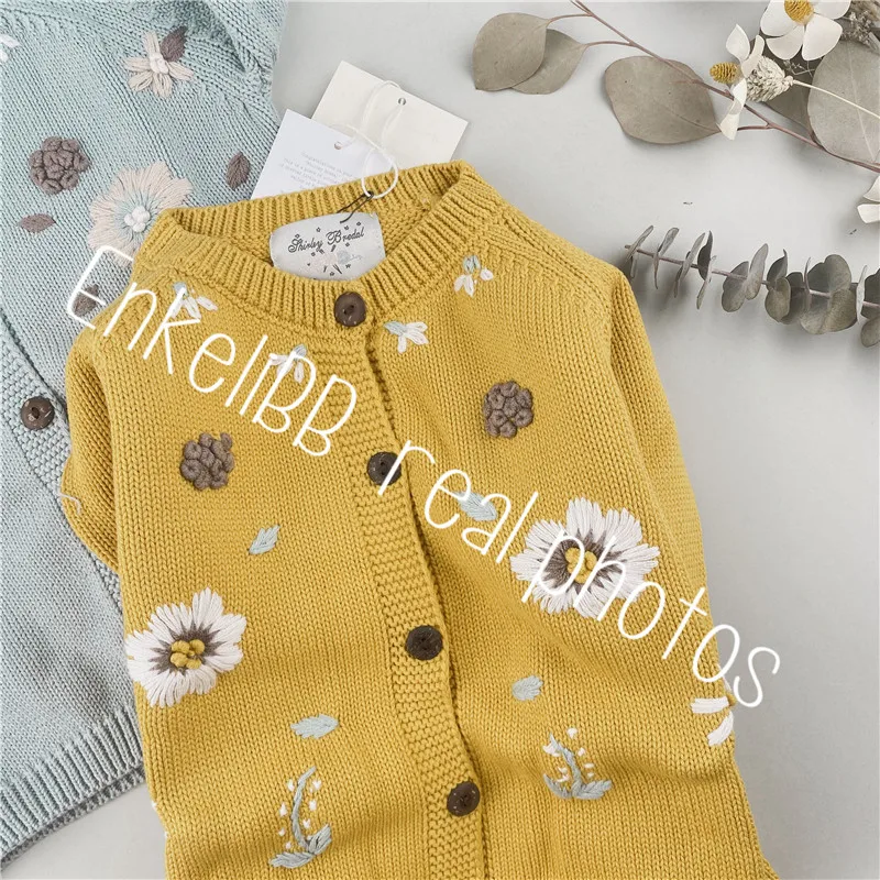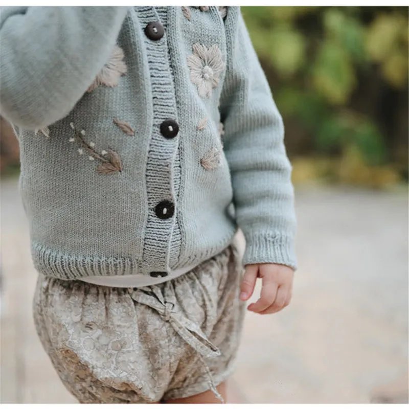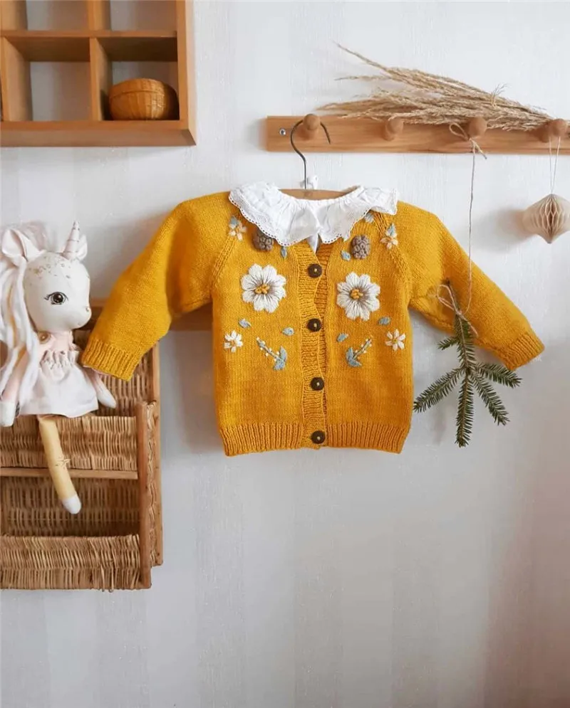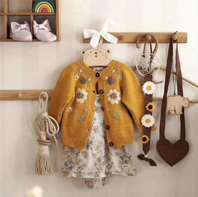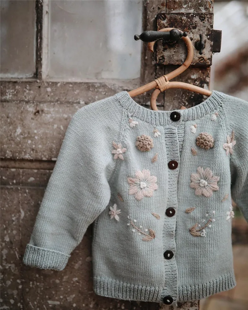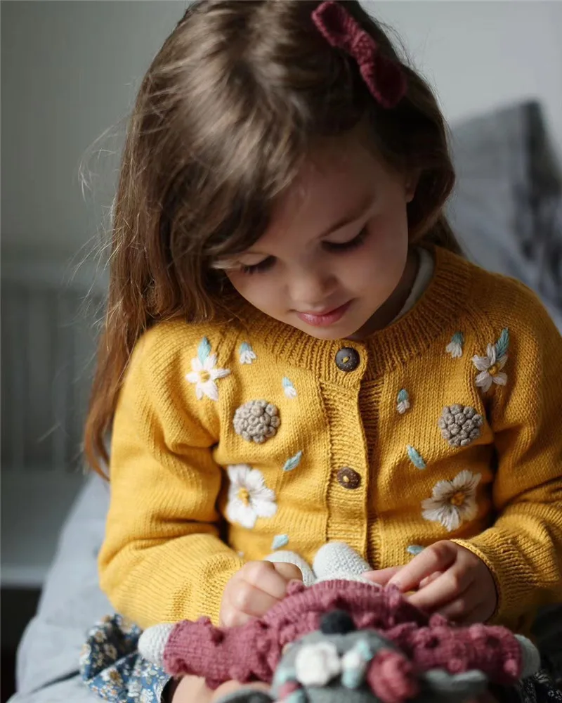 Зимний красивый кардиган для маленьких девочек, детское вязаное пальто Shirley, винтажные пальто с вышивкой, детская зимняя одежда для девочек