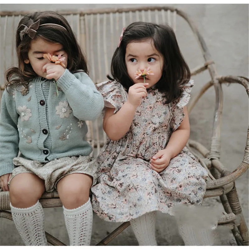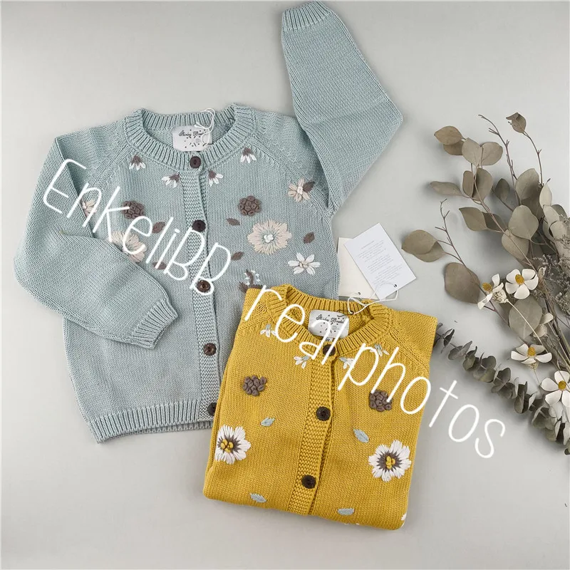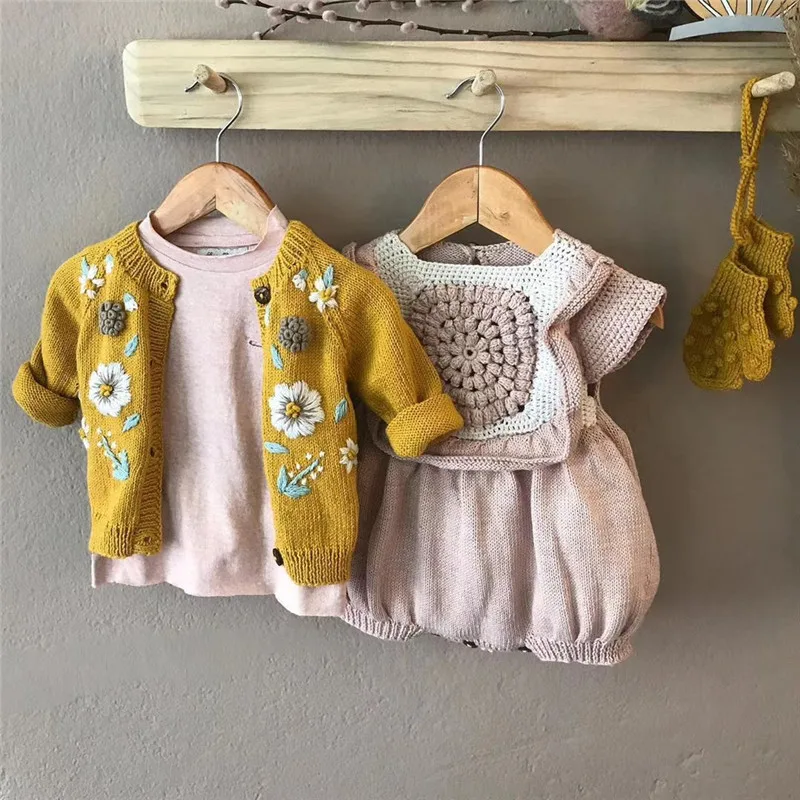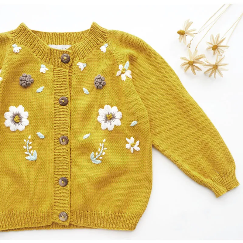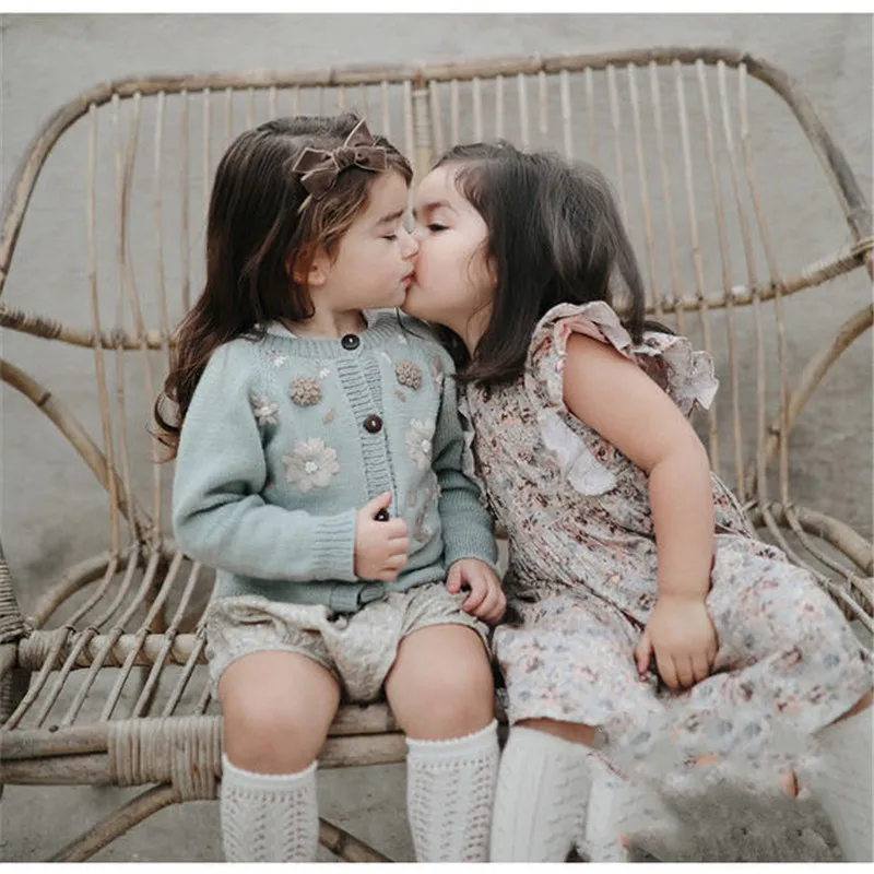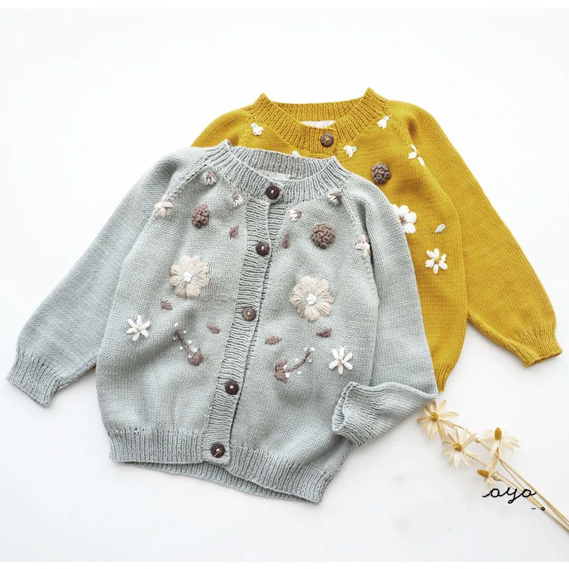Зимний красивый кардиган для маленьких девочек, детское вязаное пальто Shirley, винтажные пальто с вышивкой, детская зимняя одежда для девочек