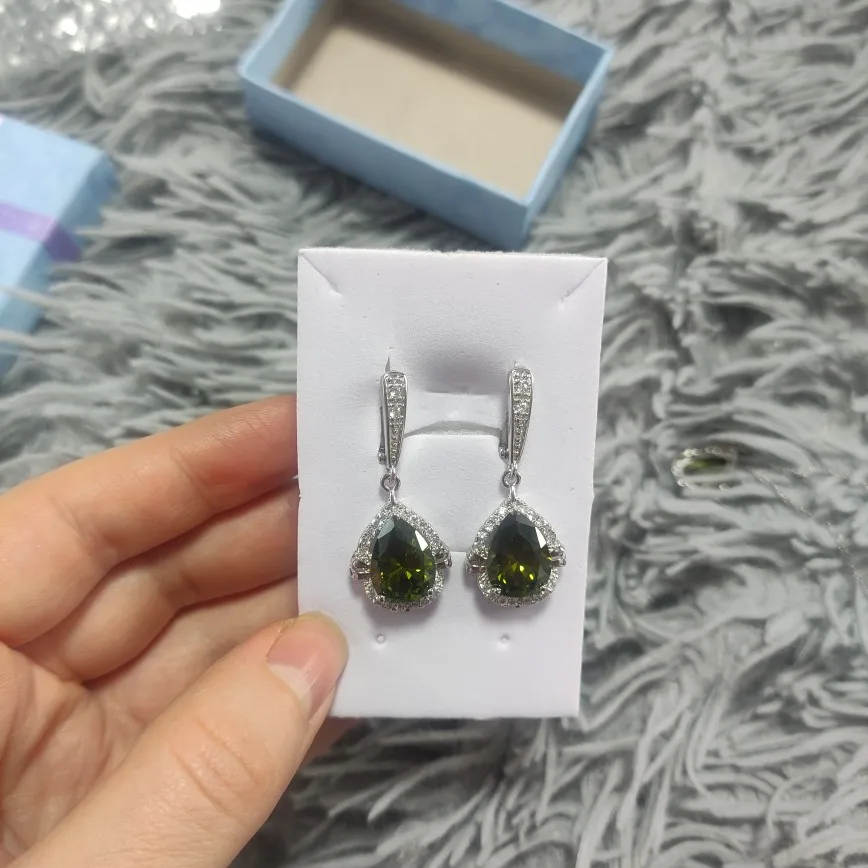 11,11 Продажа Ювелирные наборы из серебра 925 пробы с зеленым кубическим цирконием Свадебный костюм ожерелье и серьги капли воды наборы