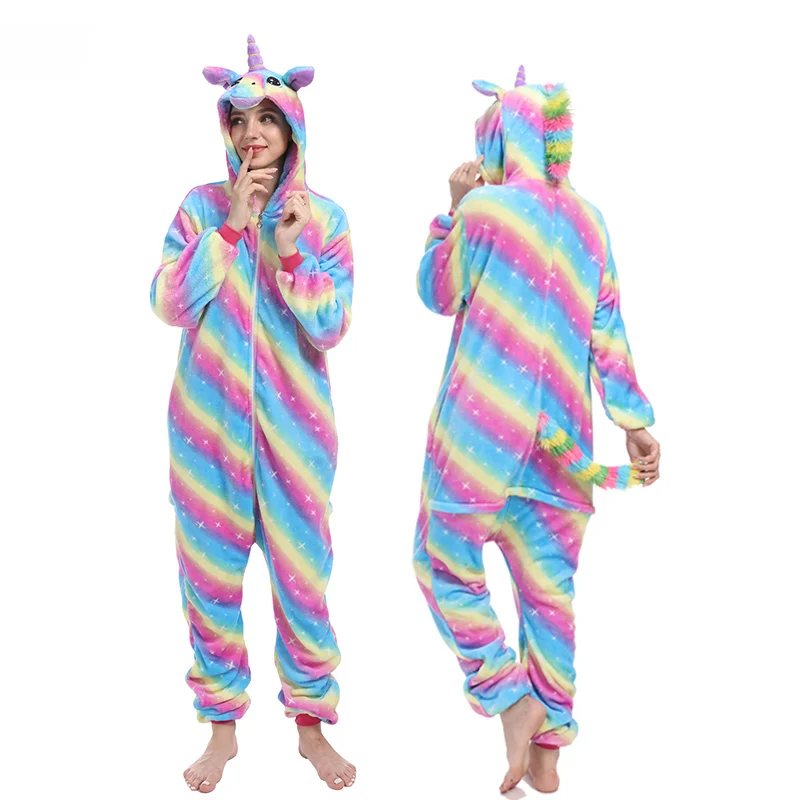 Новые пижамы-кигуруми в виде единорога, зимняя Пижама для взрослых, пижамы в виде животных, панды, единорога, женские комбинезоны, Аниме Костюмы, комбинезон