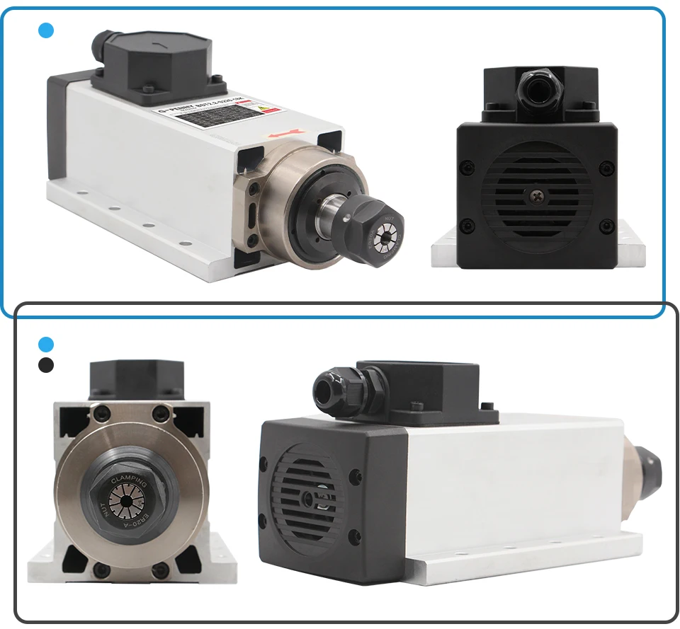 1. Охлаждение разными способами: шпиндель с водяным охлаждением-это использование водного цикла для охлаждения тепла, генерируемого после высокоскоростного вращения шпинделя, шпиндельного двигателя с вентиляторным охлаждением.2. Шум: двигатель шпинделя с водяным охлаждением в основном не шумит, но двигатель шпинделя с воздушным охлаждением очень громкий.3. Жизненные аспекты: Шпиндельный двигатель с водяным охлаждением, обратите внимание на техническое обслуживание, часто изменяет воду или использование промышленных водяных охладителей, вентилятор шпинделя с воздушным охлаждением в основном путем продувки ветром тепла, передаваемого в радиатор, для достижения эффекта охлаждения.4. Если вам нужно использовать для металла, твердой древесины, гранита, камня, вы можете выбрать металлический шпиндель. Металлический шпиндель намного лучше, чем деревянный шпиндель.