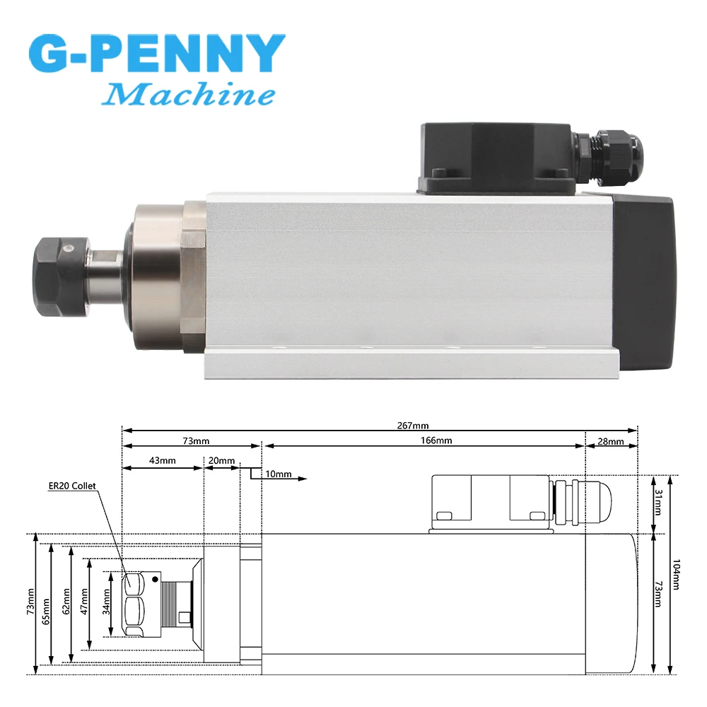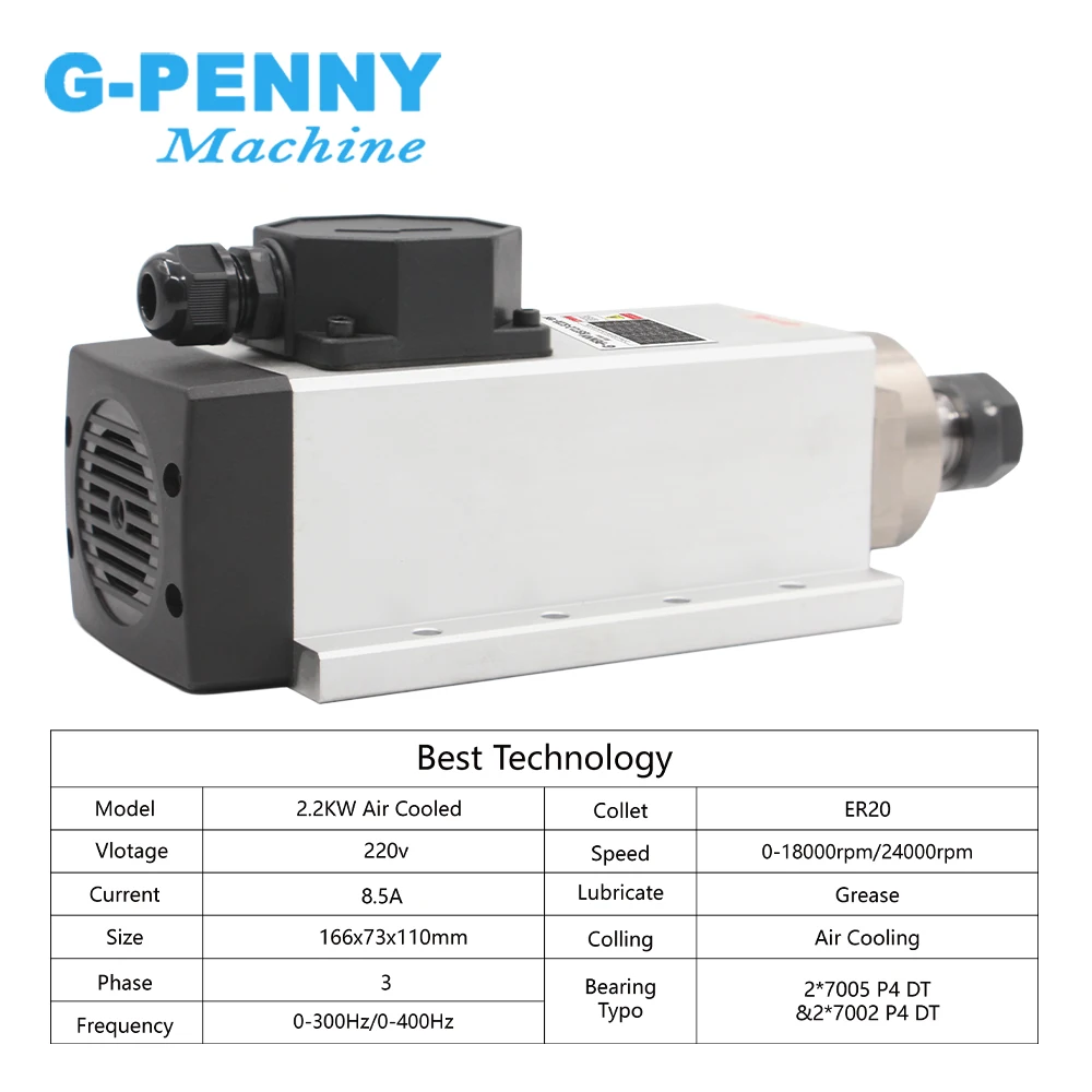 1 шт. & 2.2kw ER20 с воздушным охлаждением шпинделя двигателя квадратного типа 4 шт. подшипники