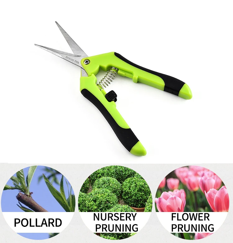 Особенности:<Многофункциональность: Идеально подходит для обрезки листовые почки, ветки, корни и многое другое, отлично подходит для глубокой резки в труднодоступных местах.<Применение: Идеально подходит для сада или домашнего использования.<Материал: изготовлен из высококачественной нержавеющей стали острые лезвия и PP + TPR ручка, которая имеет длительный срок службы.<Эргономичная ручка: нескользящая конструкция обеспечивает удобное сцепление.