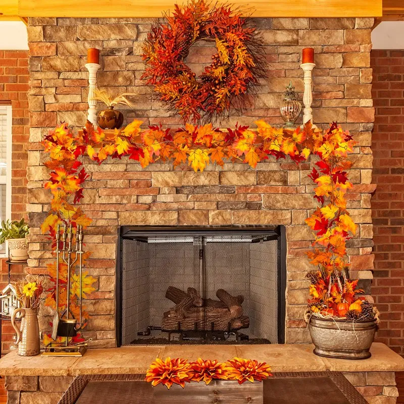 2 шт. искусственная Осенняя гирлянда с кленовыми листьями, Осеннее подвесное растение для дома, сада, настенный дверной проем, декорация для камина, СР