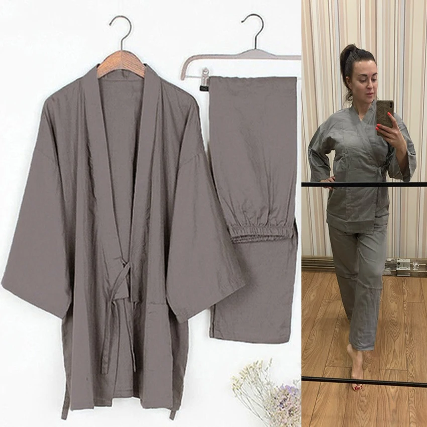 Комплект одежды для влюбленных из 2 предметов в японском стиле, кимоно с милым принтом, юката, хлопковая Паровая Пижама, мужской халат, ночная рубашка