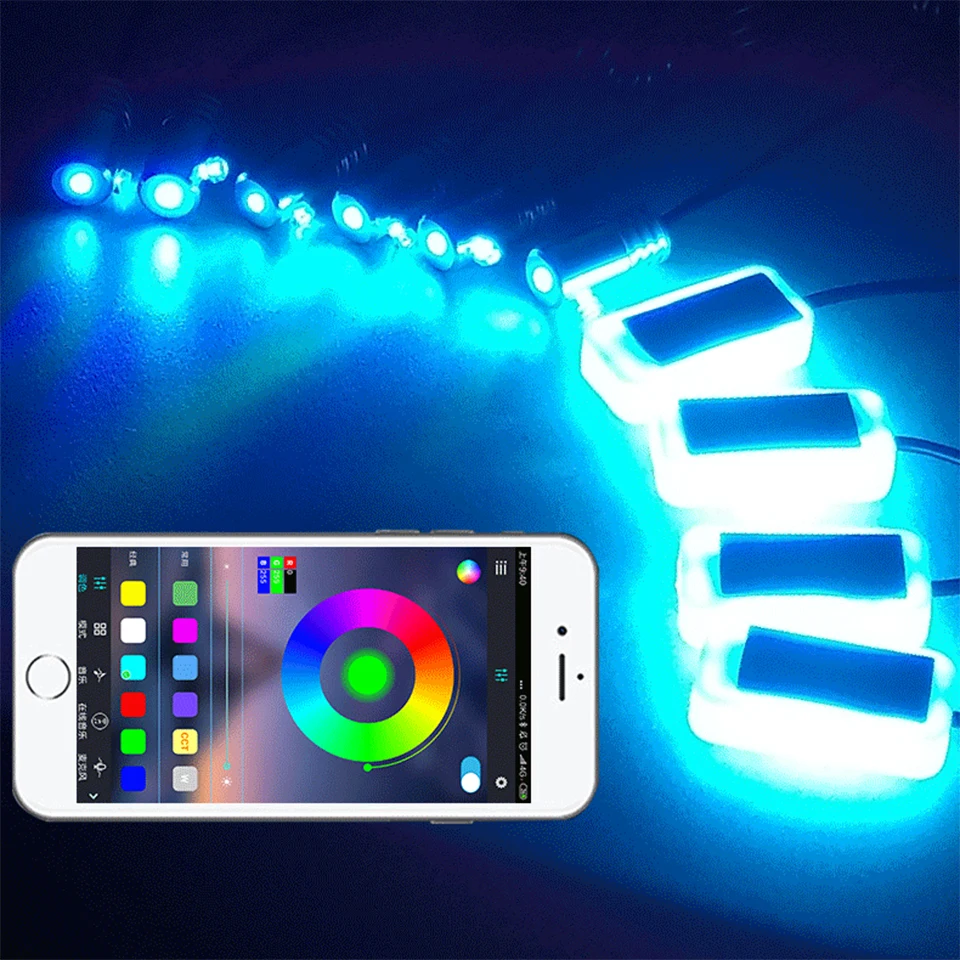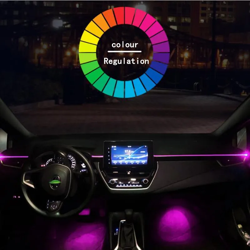 Универсальный светодиодный светильник 10 в 1 RGB с 8 м декором интерьера, автомобильный волоконно-оптический ленточный светильник с помощью приложения, 12 В, декоративные атмосферные лампы