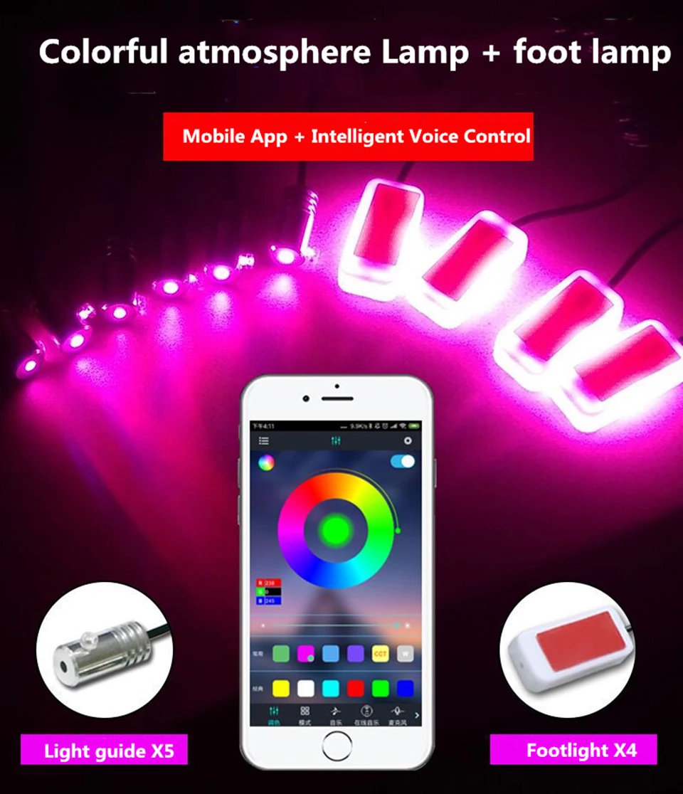 TPYCBX автомобильный светильник, внутренний светодиодный 12 в атмосферный светильник, декоративное украшение, Автомобильный светодиодный напольный светильник, гибкая полоса, окружающий светильник s
