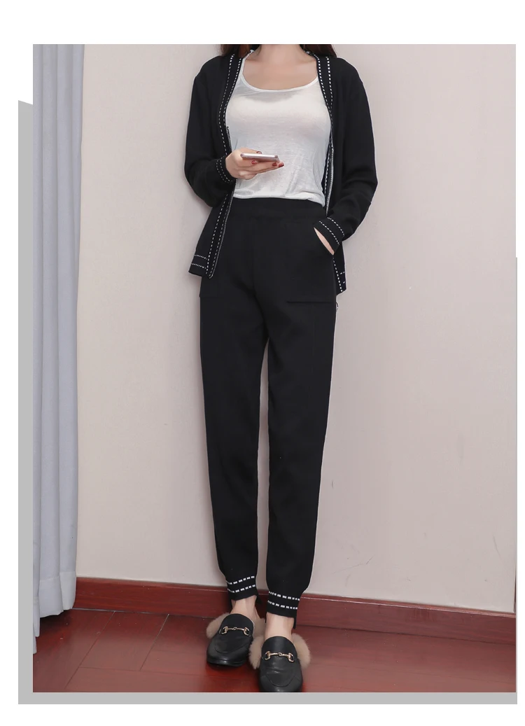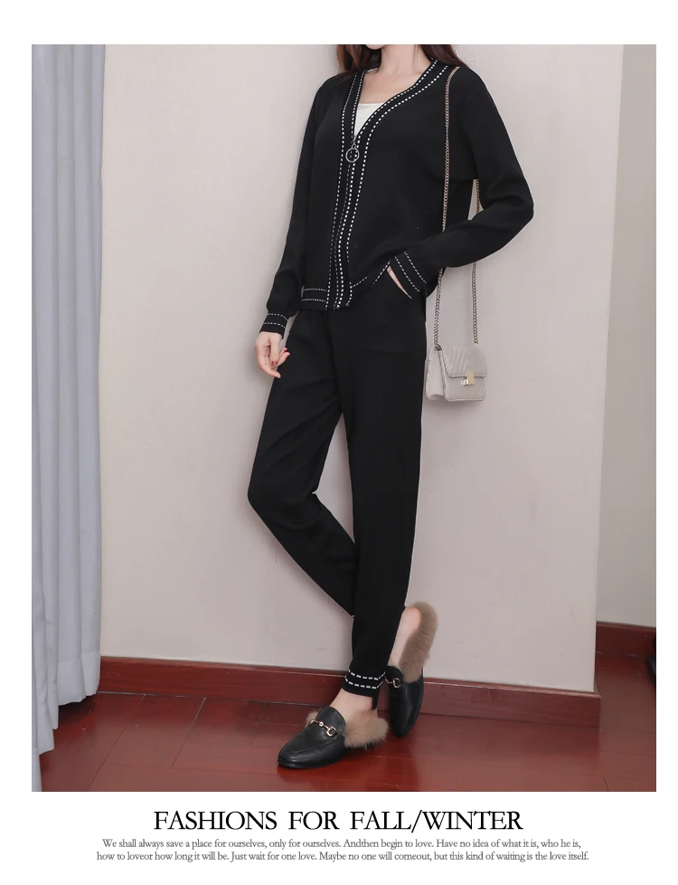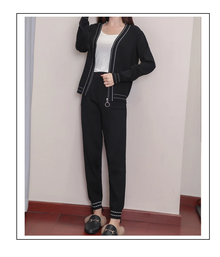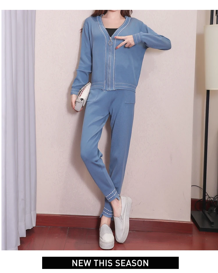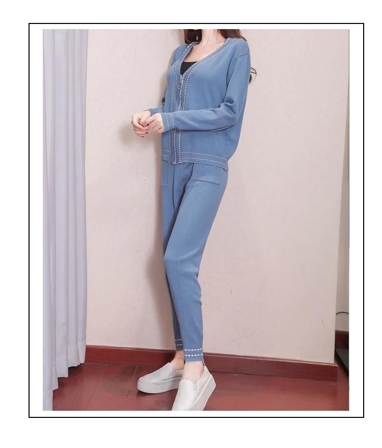 Женский Повседневный Спортивный костюм, Трикотажный костюм из двух предметов, кофта на молнии с V-образным вырезом и длинные брюки, осень 2020