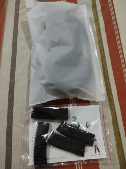 Хорошо сидит. Амбушюры немного меньше, чем оригинальные. Надеюсь, что они не расстаются со временем, как оригинальные. Повязка на голову немного больше и не такая мягкая, как оригинал. В целом товар хороший.