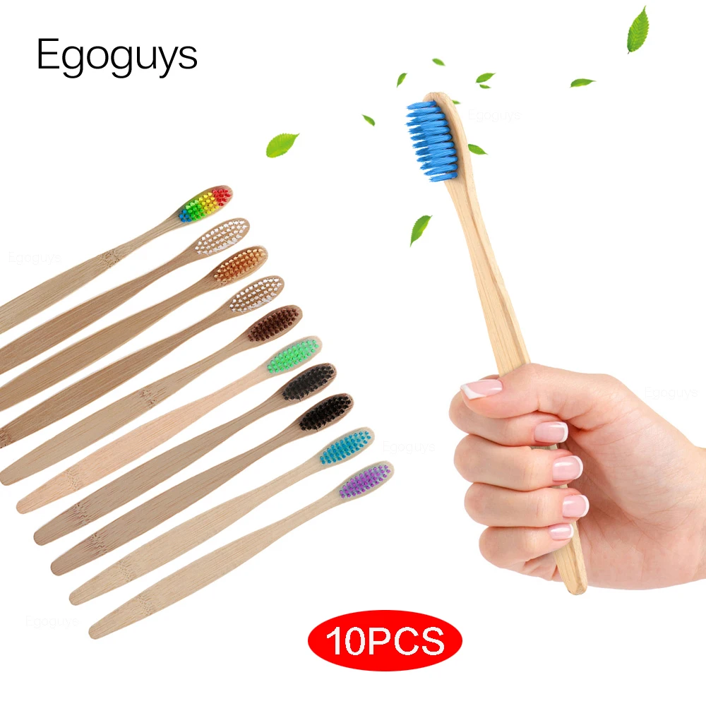 10 шт., Деревянные Зубные щётки с бамбуковой ручкой