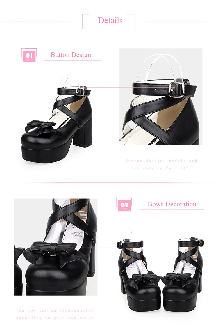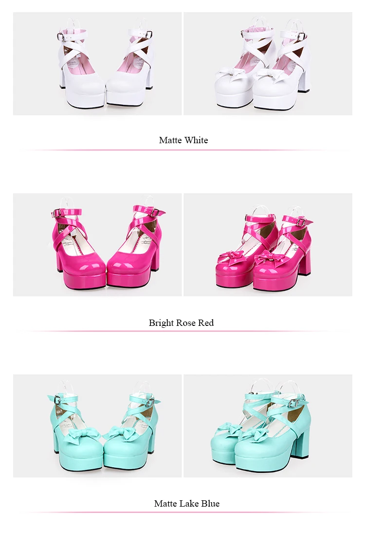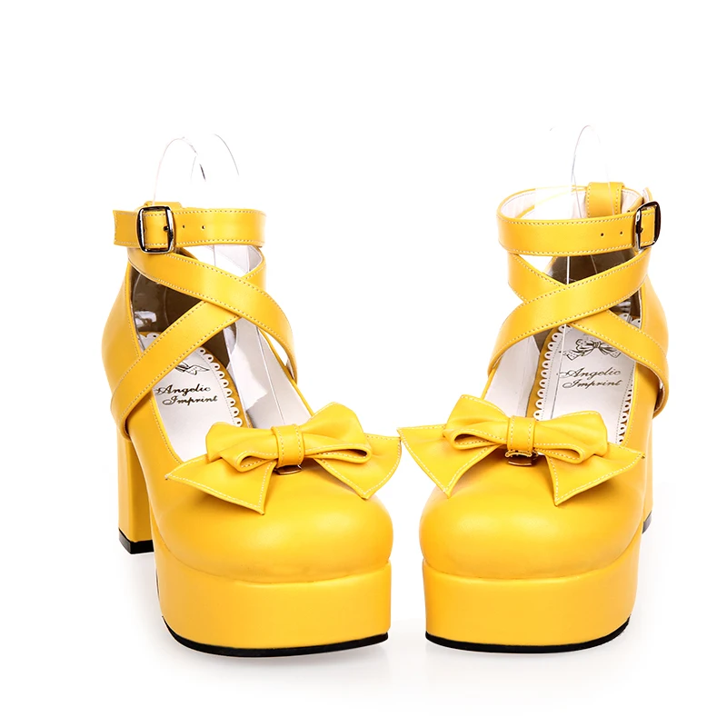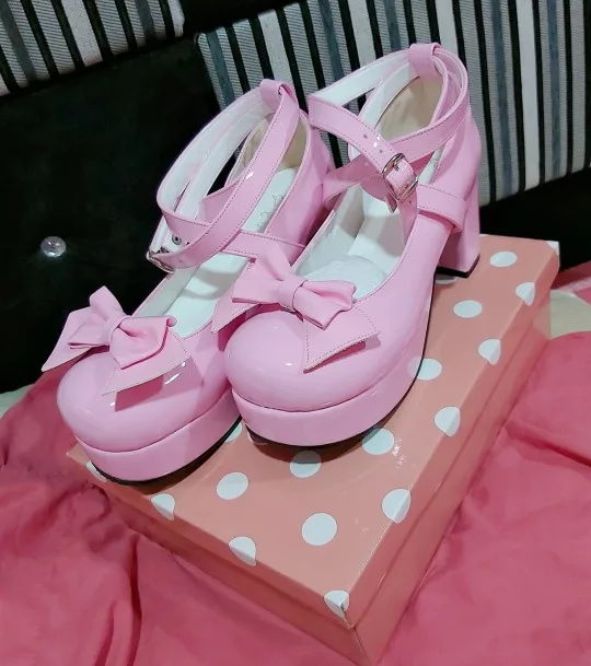 Туфли женские в японском стиле, обувь принцессы в стиле "Лолита", обувь со съемным бантом для карнавала, Хэллоуина, косплея, обувь на высоком каблуке