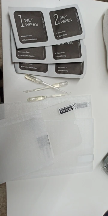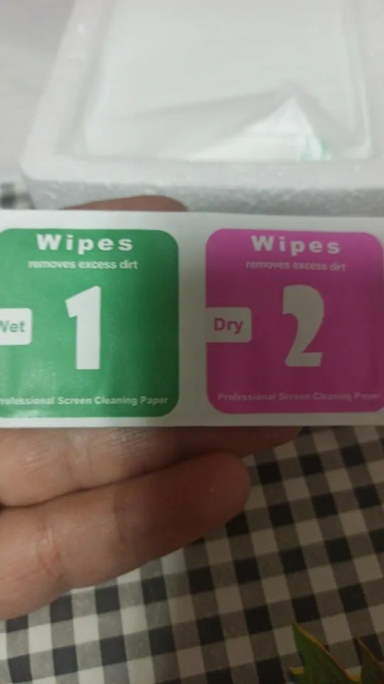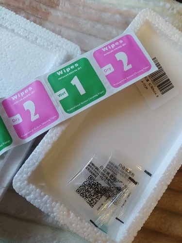 не хватает наклеек для очистки от пыли, зато есть жидкость от воздушных пузырей