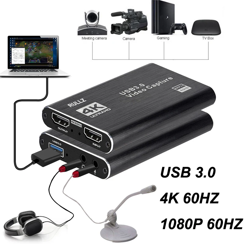 Rullz 4K 1080P USB 2,0 HDMI Карта видеозахвата Аудио Видео Запись к...
