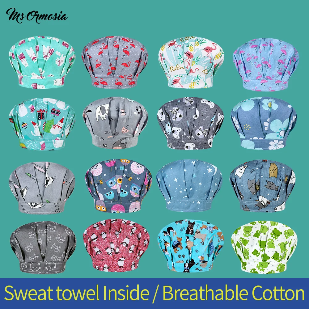Шапка медсестринская с принтом животных, мягкая впитывающая пот пол...