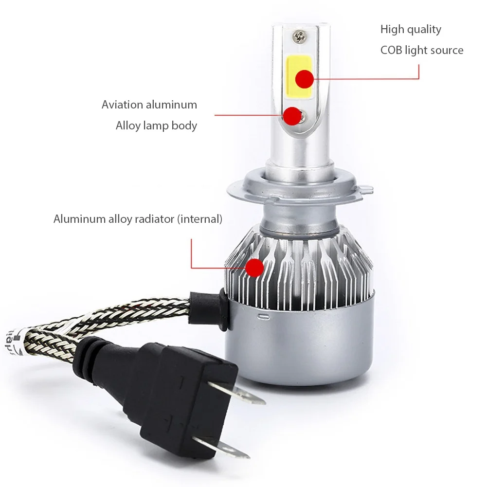 Сверхъяркие фары дальнего света C6 H1/H4/H7 автомобильная светодиодная лампа для фары 6000K, 2 шт. Технические характеристики: Яркий чип COB, длительный срок службы. Универсальная система теплопроводности и рассеивания позволяет удерживать лампу в соответствующей рабочей температуре. Легко установить и использовать. Название товара светодиодный автомобильная светодиодная фара Материал: металл Количество: 2 шт. Напряжение: 9-36 в Мощность: 36 Вт/пара Люмен: 3800 лм/пара Вентилятор: вентилятор с двумя шарикоподшипниками Световой шарик: COB Цветовая температура: 6000K Срок службы: >50000 ч Особенности: термостойкий, прочный, простой в установке Размер: H1: 3,5 см x 8,6 см/1,38 "x 3,39", H4: 3,5 см x 10 см/1,38 "x 3,94", H7: 3,5 см x 8,5 см/1,38 дюйма x 3,35 дюйма (прибл.) Примечания: Из-за разницы в освещении и настройках экрана цвет товара может сильно отличаться от изображений. Замеры сделаны вручную, поэтому возможны незначительные отклонения в размерах. Посылка входит: 2 x Автомобильные светодиодные фары