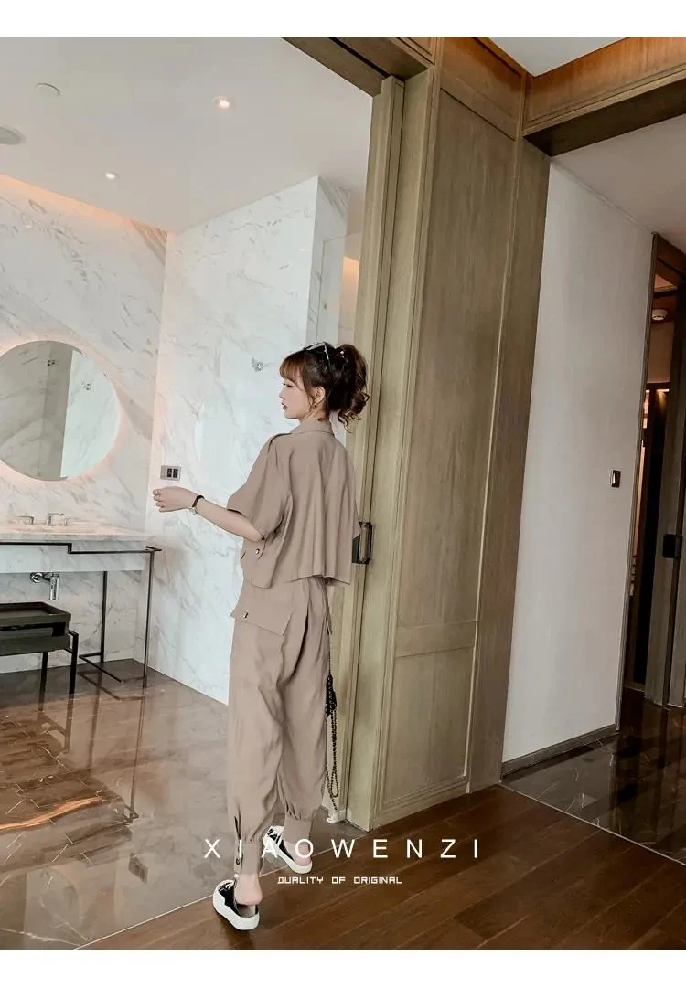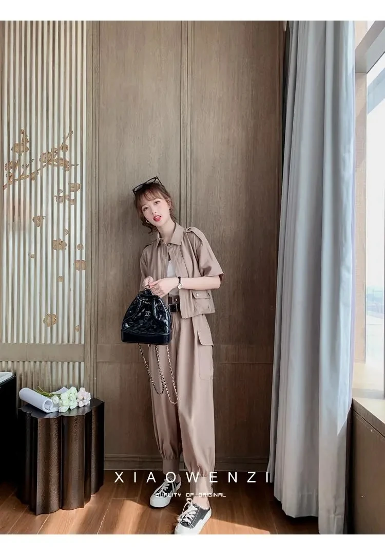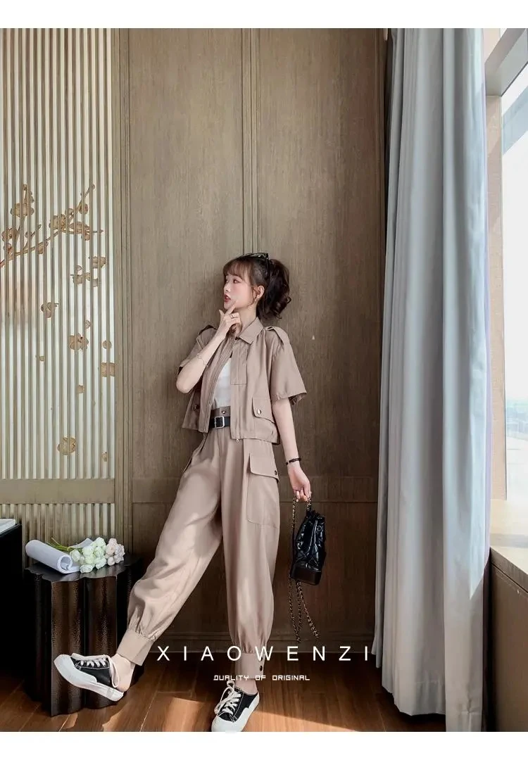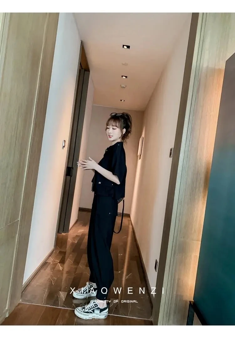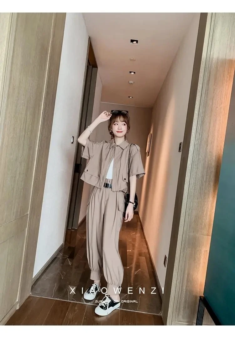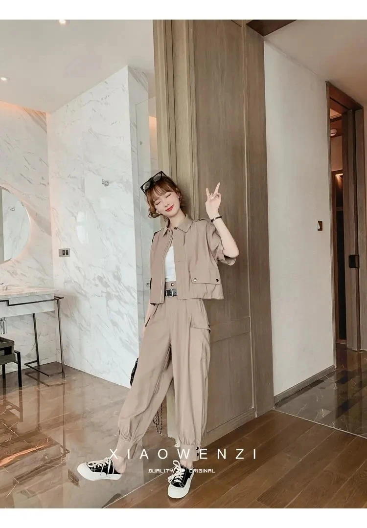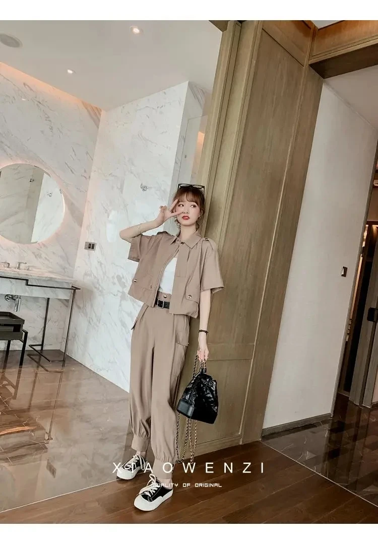 Осень 2022, Женский костюм из 2 предметов, женский новый облегающий повседневный костюм с брюками, летний костюм из двух предметов, топ и длинные брюки