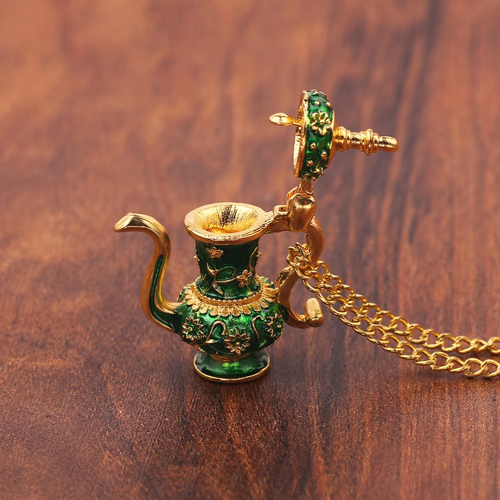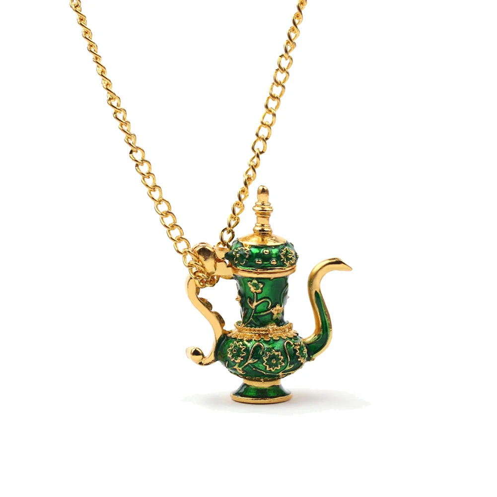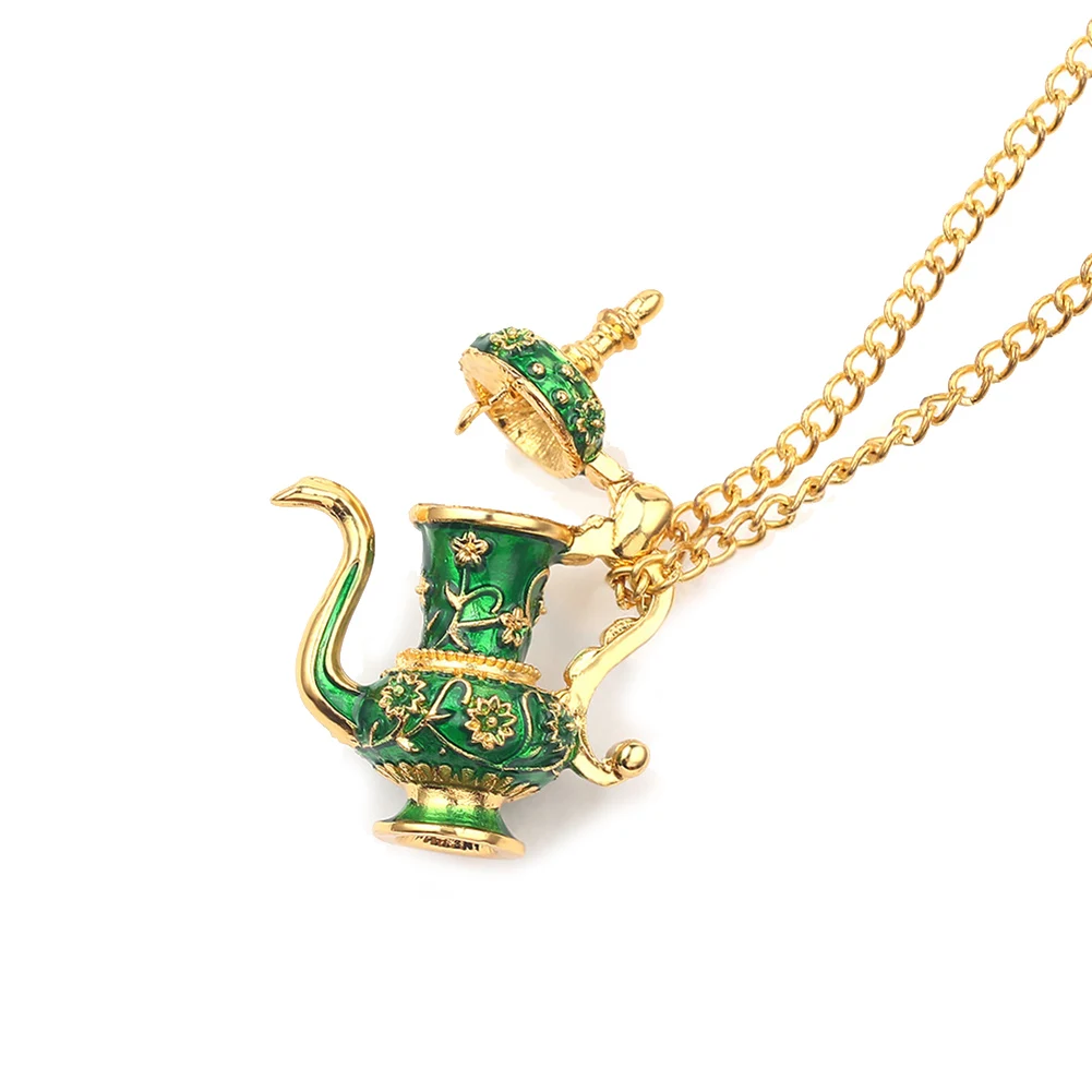 Винтажное ожерелье, Арабская волшебная лампа, дизайн, эмалированный кулон в виде зеленого чайника, длинная цепочка, женское ожерелье на свитер, модные украшения