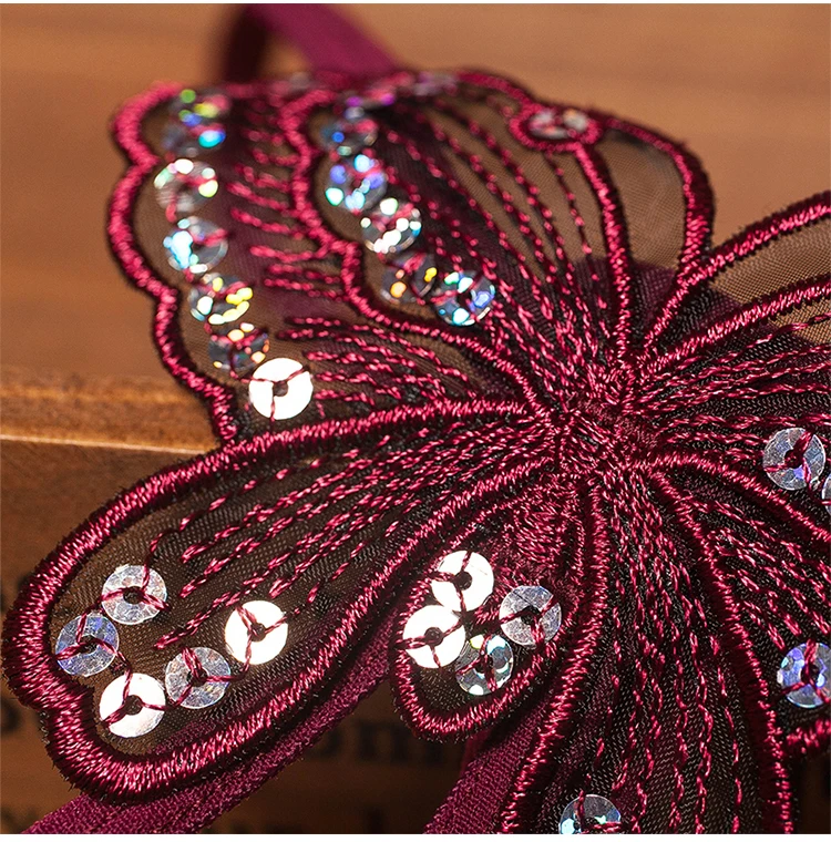 Сексуальные открытые стринги с низкой талией, вышитые бабочками, тр...