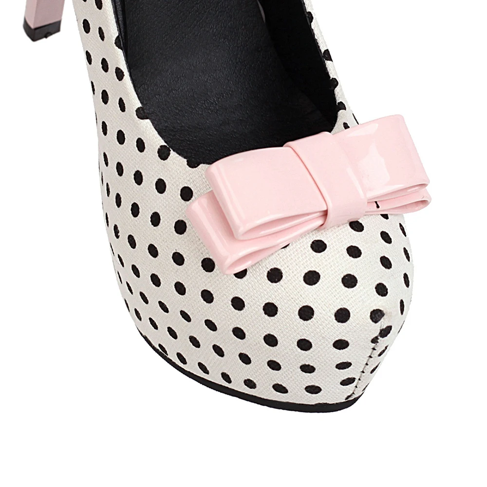 Пикантные женские туфли-лодочки на очень высоком каблуке и платформе модельные туфли в горошек с бантом женские элегантные свадебные туфли женские туфли на шпильке 12 см