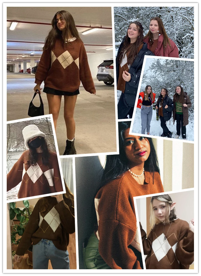 Вязаный свитер, Женский Повседневный пуловер с узором ромбиками, зимний Свободный Топ в стиле колледжа, женский джемпер, 2021