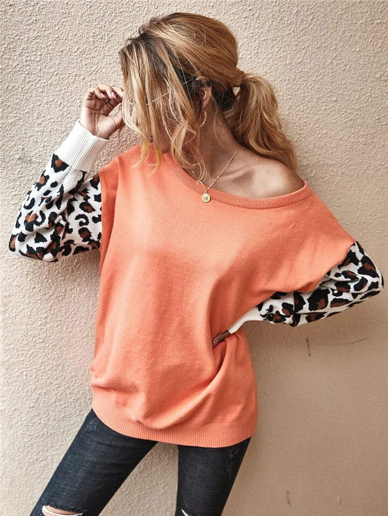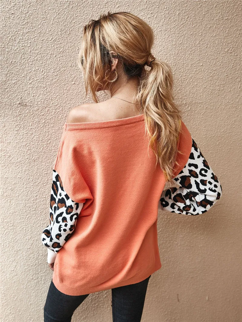 Свитер женский трикотажный, с длинным рукавом, с леопардовым принтом