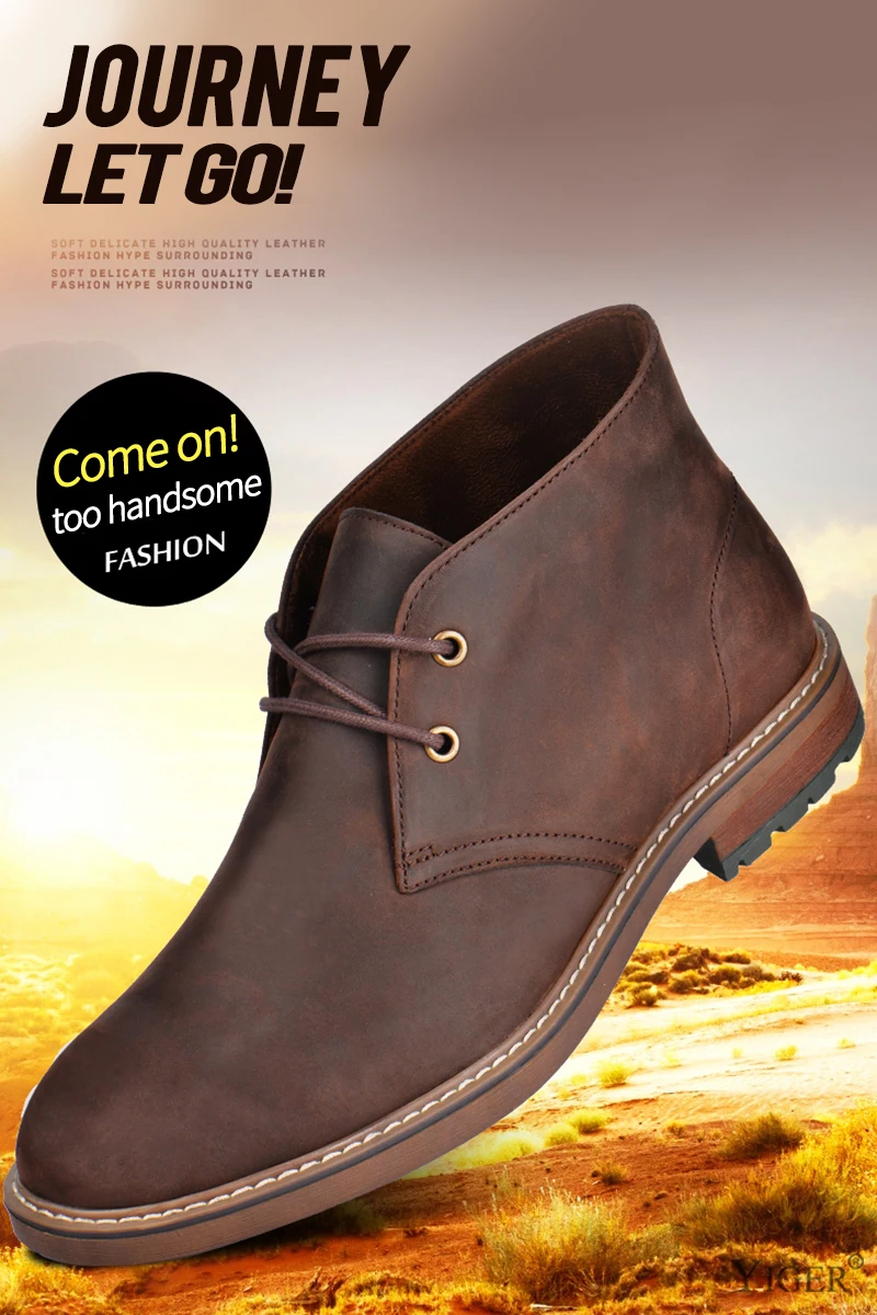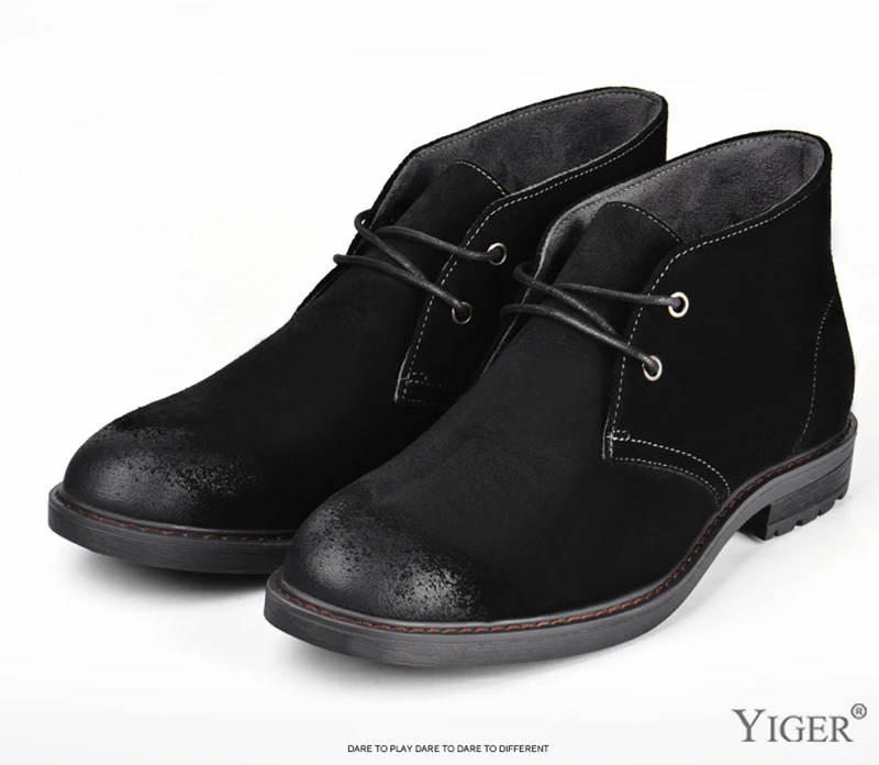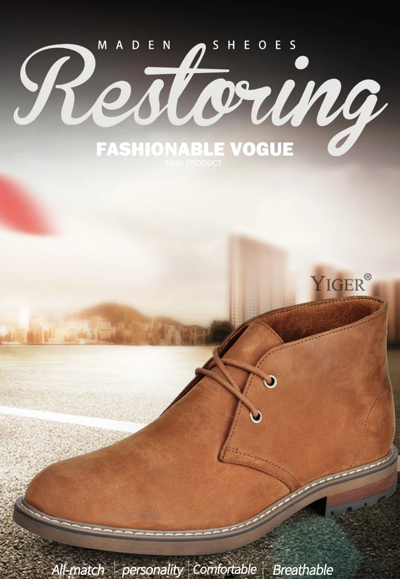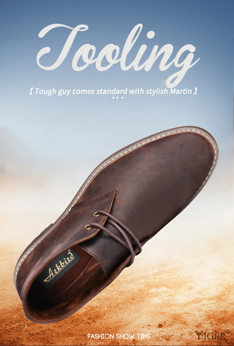 Ботинки YIGER мужские замшевые, ботинки мартинсы Crazy horse, ботильоны на шнуровке, Нескользящие повседневные, большие размеры