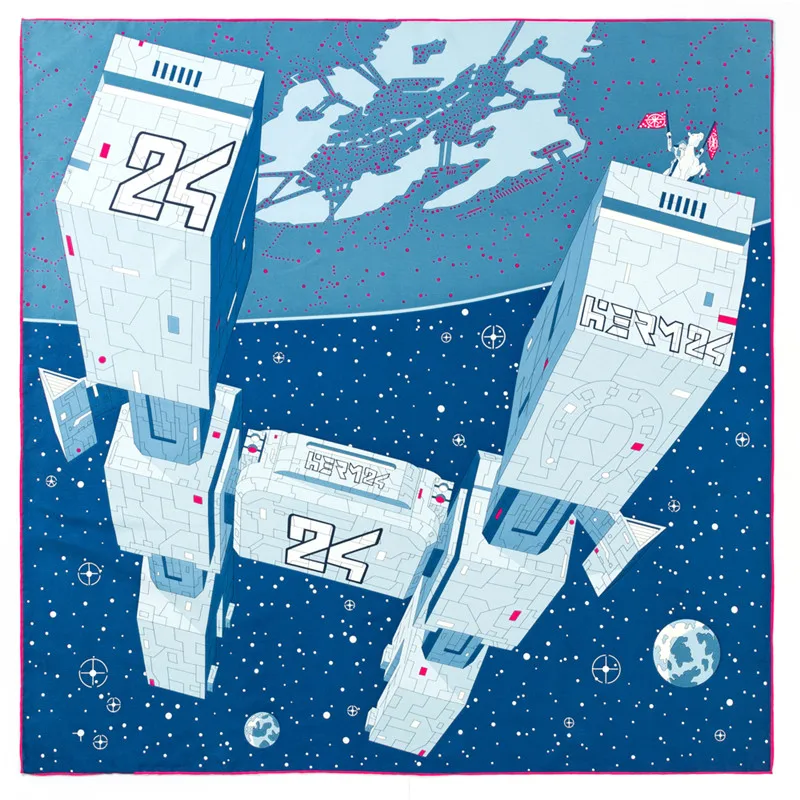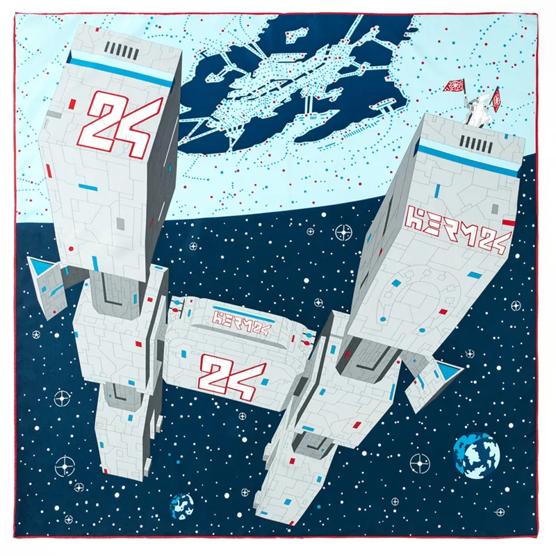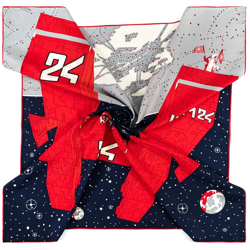 Шарф POBING ручной работы из саржевого шелка, женские квадратные шарфы Space Station, шарфы Echarpes, Женская бандана, хиджаб 90 см