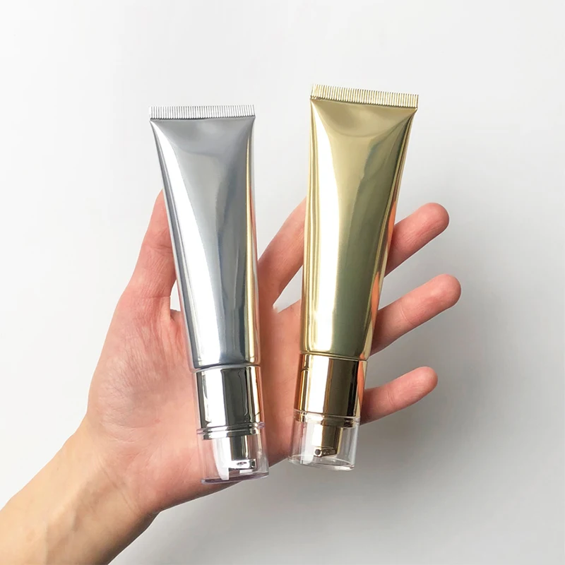 Пустая косметическая бутылка 50 мл, 50 г, безвоздушная туба для нанесения основы под макияж, цвет: белый, черный, серебристый, золотой