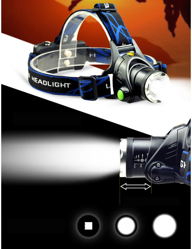 Налобный фонарь, светодиодный, 8000 Люмен, L2T6, с регулируемой яркостью, с аккумулятором 18650, для рыбалки Налобные фонари для охоты