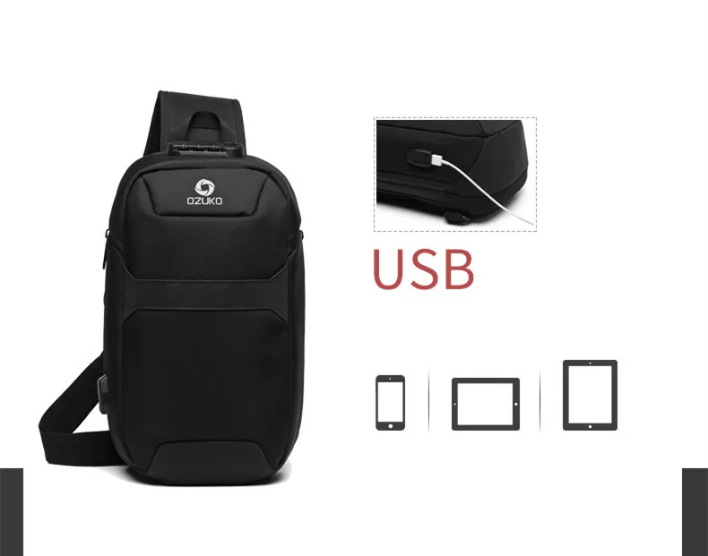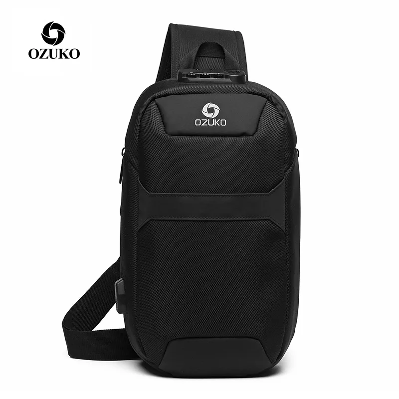 Нагрудная сумка OZUKO мужская с USB-зарядкой, водонепроницаемый мессенджер через плечо с защитой от кражи, нагрудной мешок-слинг для коротких поездок