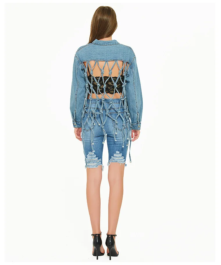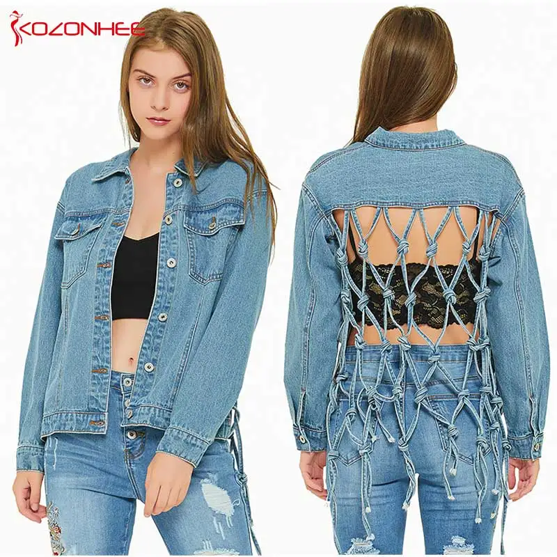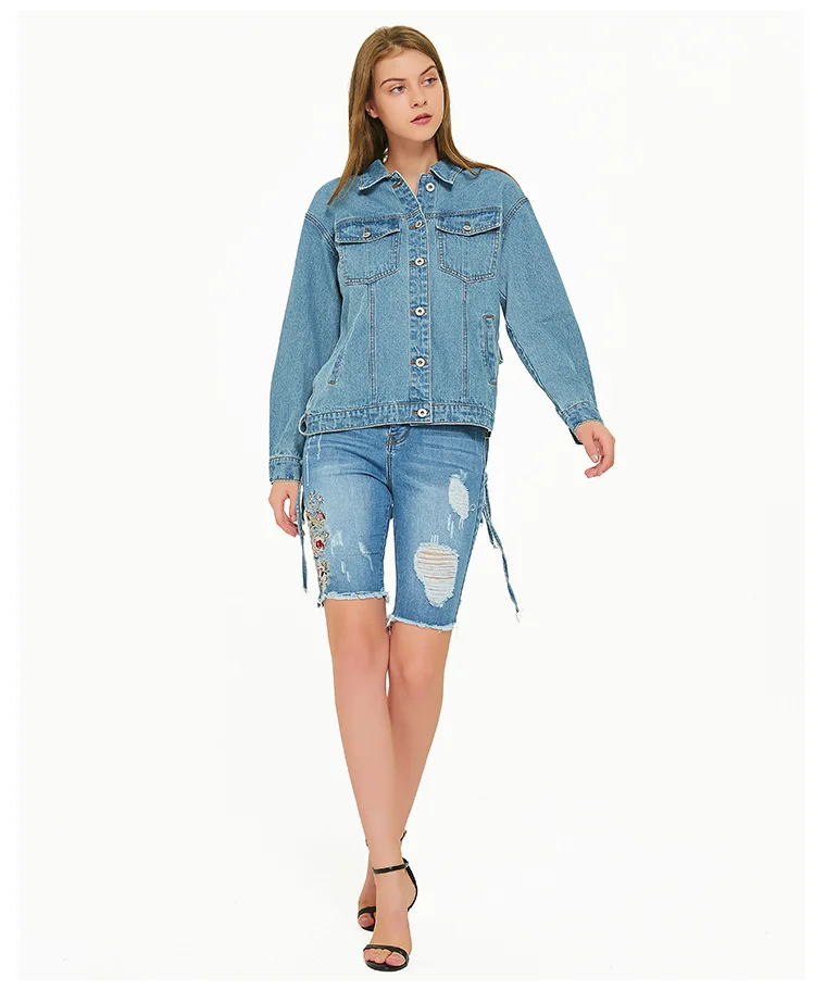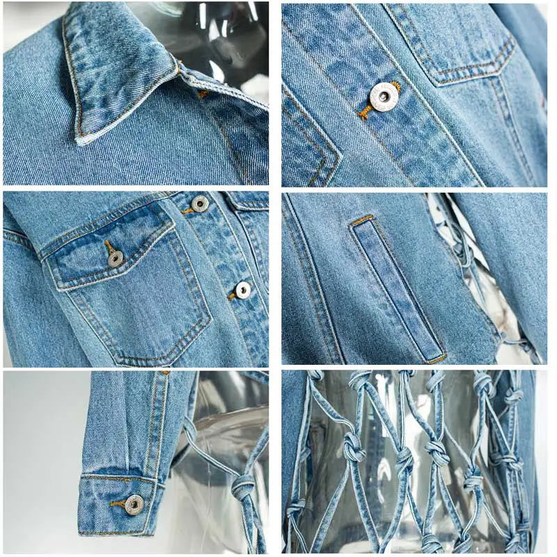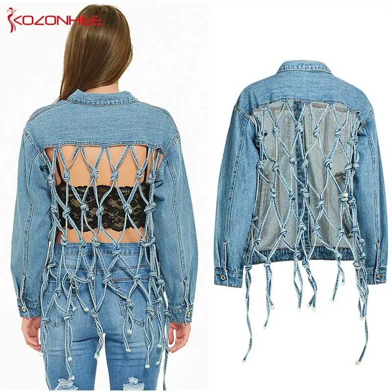 Модное синее неэластичное женское джинсовое пальто, джинсовые пальто, повседневные ажурные карманы, кисточки, женские джинсовые куртки винтажные джинсы, куртка #09