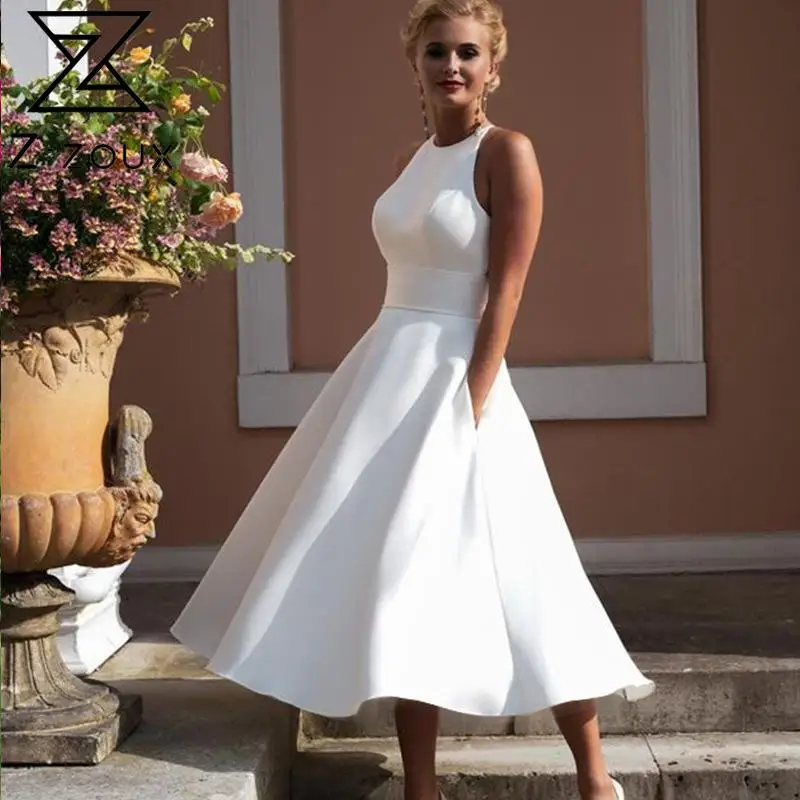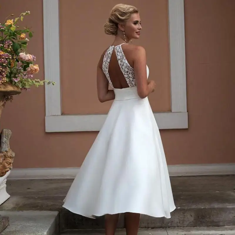 Женское свадебное платье до середины икры, белое кружевное платье н...