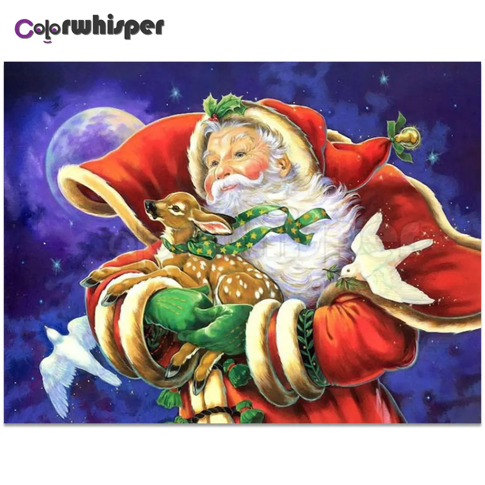 Алмазная живопись S759, полноразмернаякруглая вышивка, Санта-Клаус, Рождественский олень, 5D вышивка, вышивка крестиком, мозаика, стразы